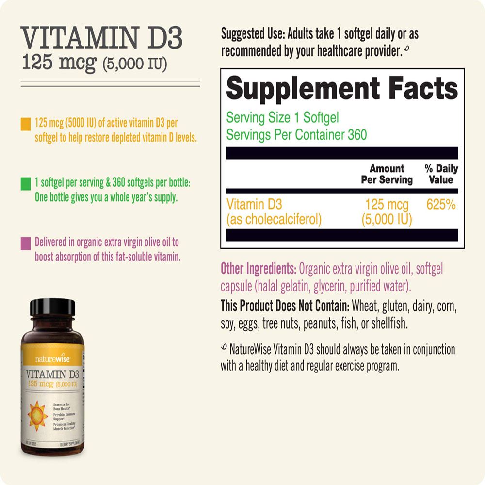 • NatureWise Vitamin D3 5000IU 360캡슐 1년-네이쳐와이즈