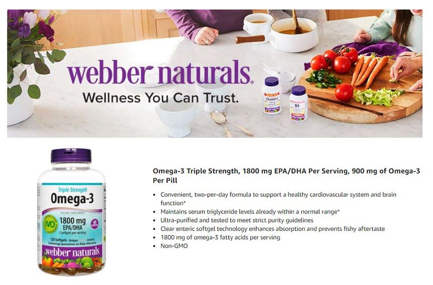 제품명 Webber Naturals Triple Strength Omega-3 Fish Oil, 1,800mg 120Softgel