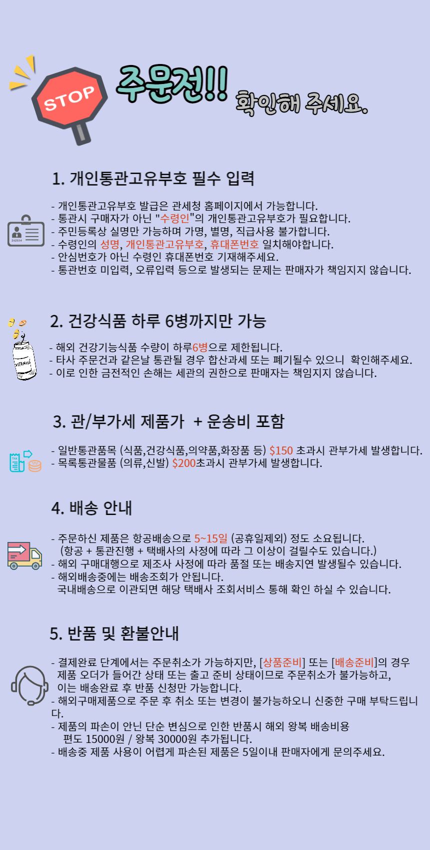 ㆍ 해외배송으로 단순변심 교환 반품은 불가합니다.