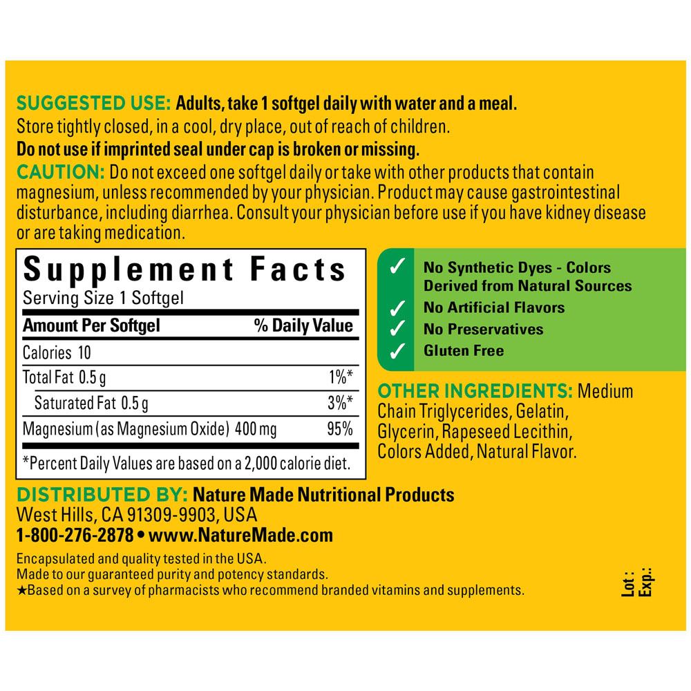 제품명 Nature Made, Magnesium, Extra Strength, 400 mg, 60 Softgels