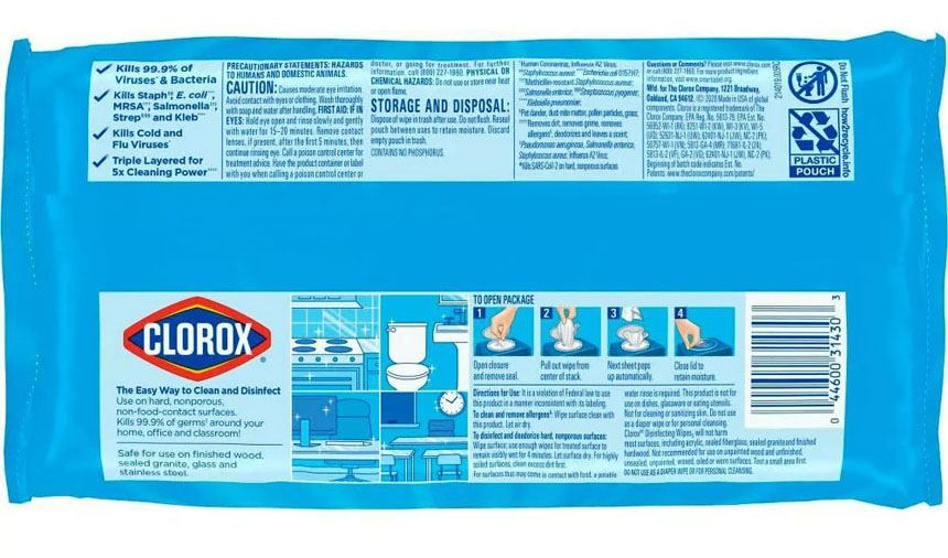 • Clorox 클로락스 소독용 티슈 75매 6팩