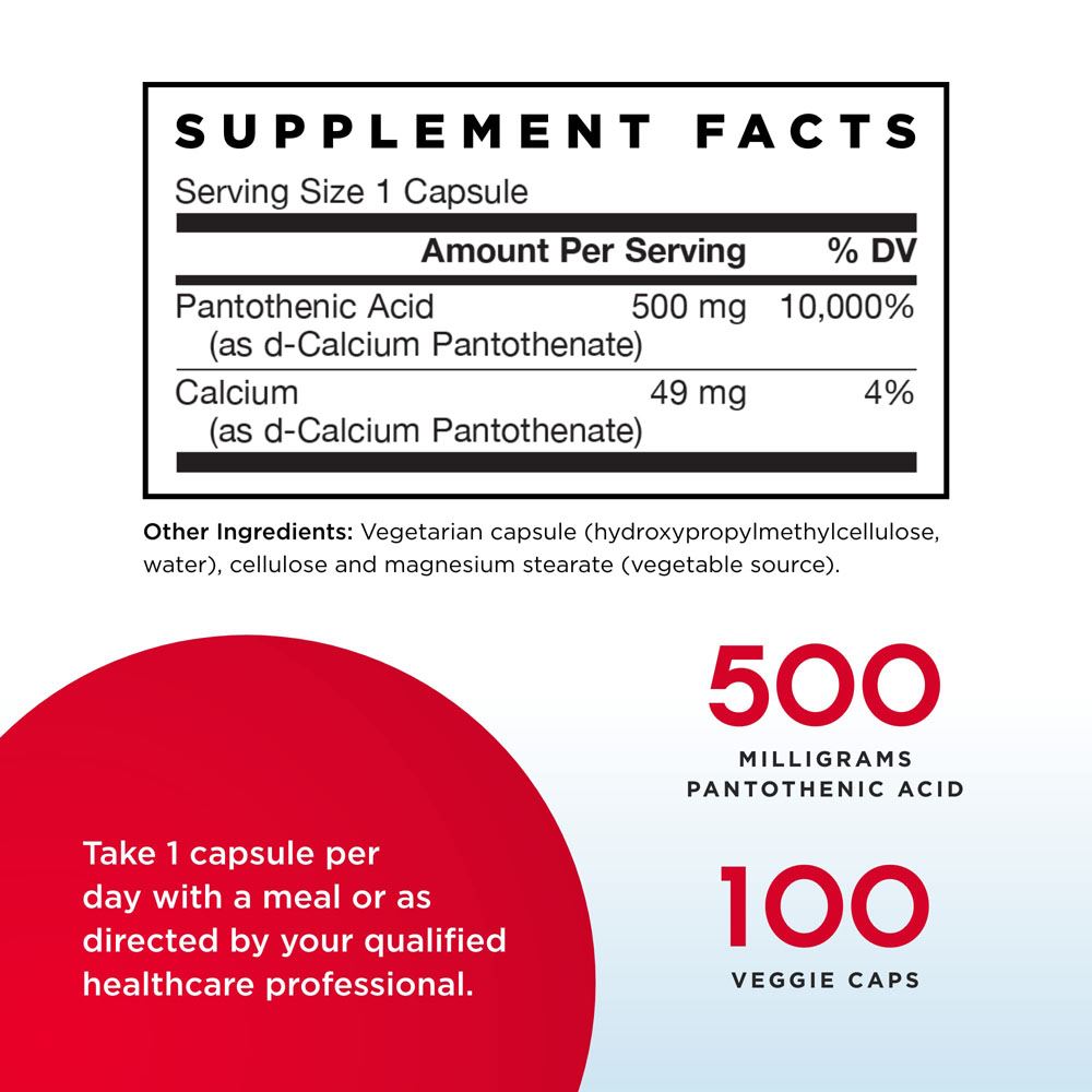 • Jarrow Formulas 재로우 판토텐산 B5 500 mg 100 Veggie Caps