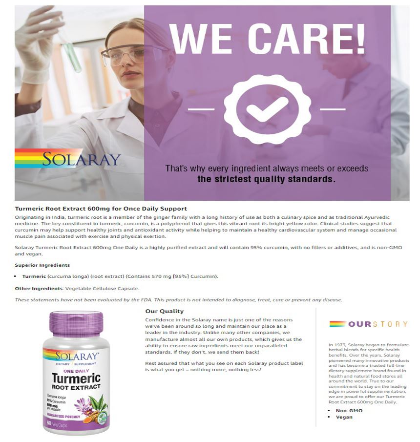 • 솔라레이 Turmeric Root Extract 600mg 60정 - Solaray
