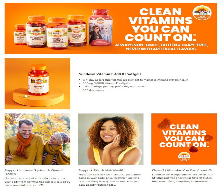 제품명 Sundown Vitamin E for Immune Support 180mg  100 Softgels