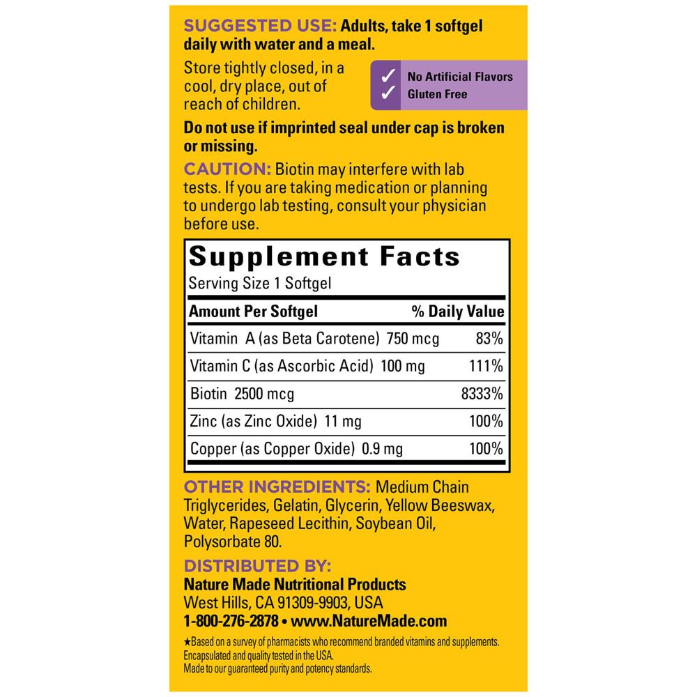 제품명 Nature Made Hair Skin and Nails with Biotin 2500mcg,60Softgels