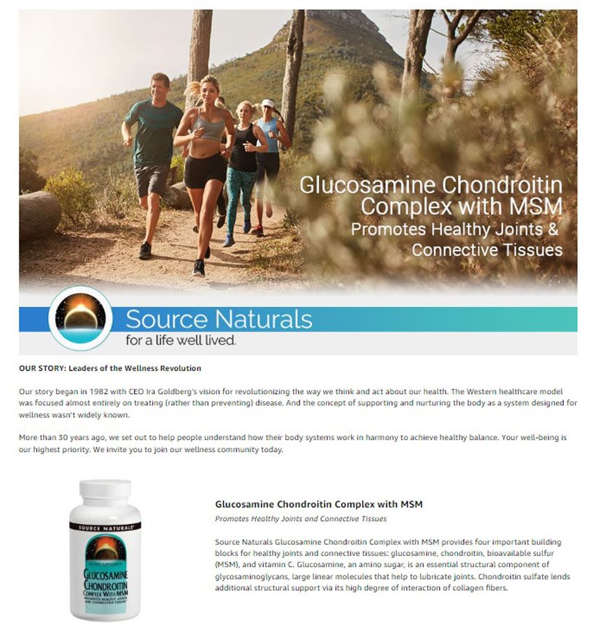 제품명 Source Naturals Glucosamine Chondroitin Complex With MSM - 120 Tablets