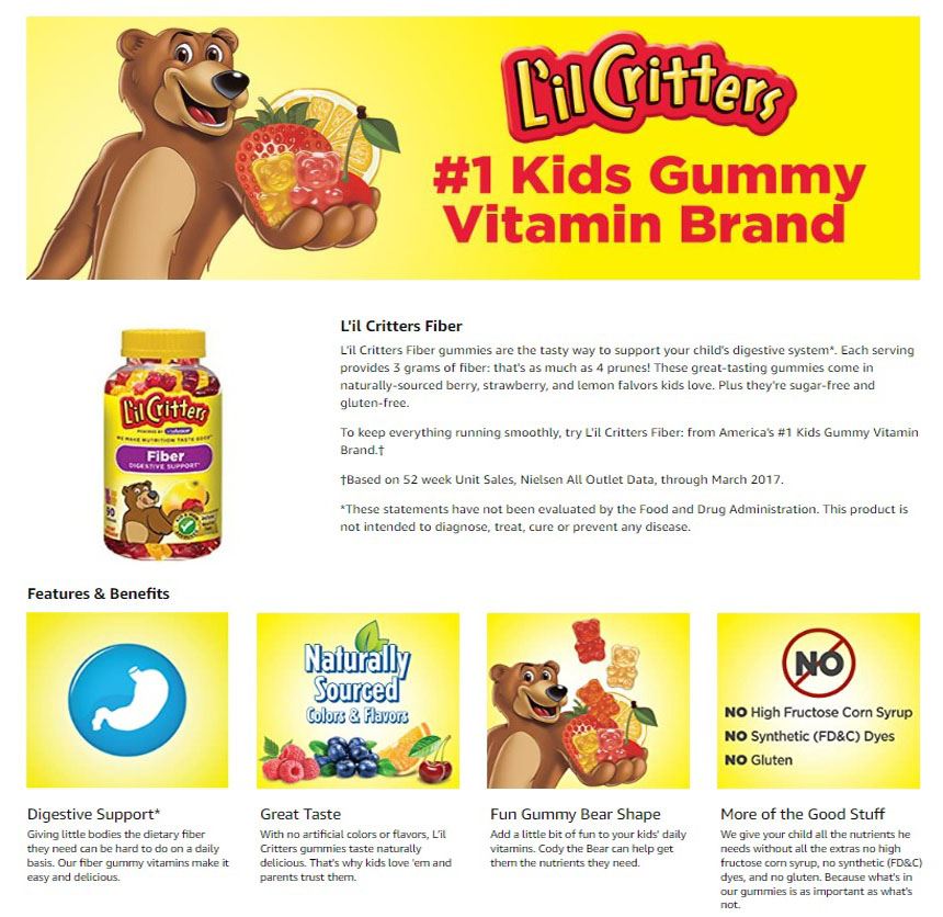 제품명 L'il Critters Kids Fiber Gummy Bears Supplement, 90 Count