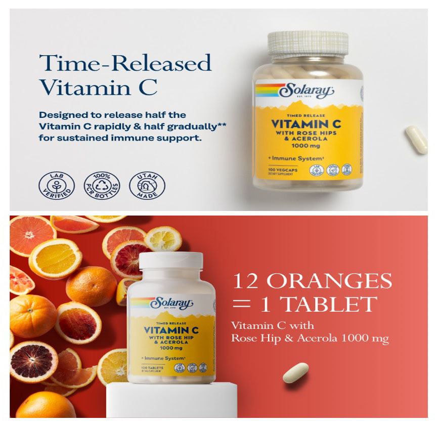 제품명 Solaray, Timed Release Vitamin C, With Rose Hip & Acerola, 1,000 mg, 100 Tablets