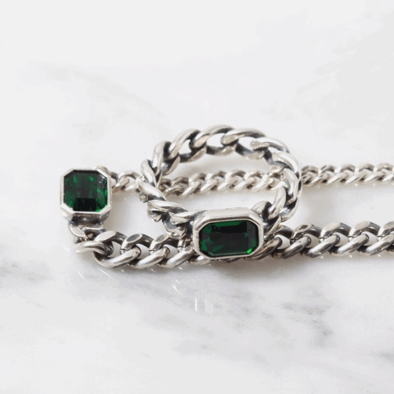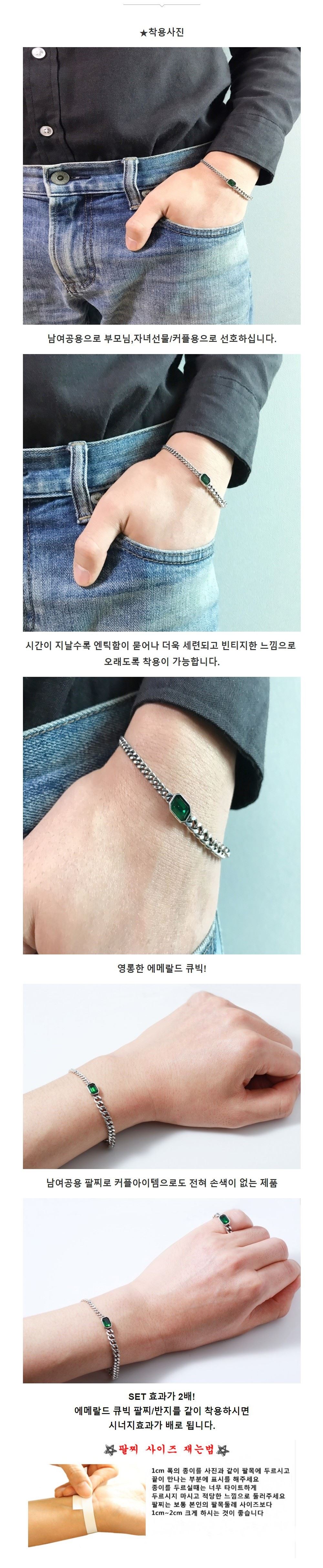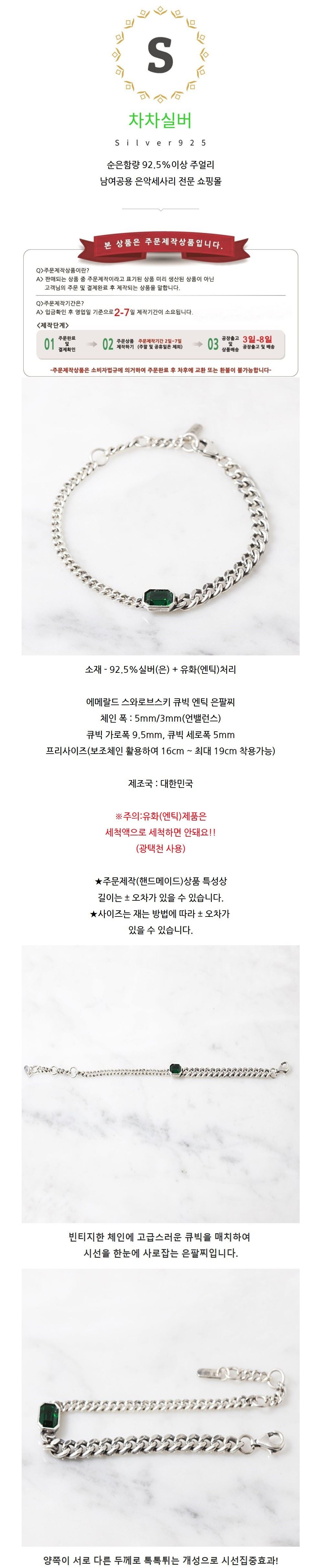 에메랄드 스와로브스키 큐빅 은팔찌 남자 여자 엔틱 925실버 남여공용 커플 세련된 / 차차실버 / 디비디비 / 구매하기 / 특가할인