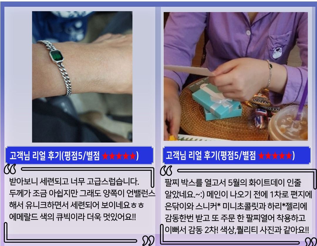 -물기는 최대한 멀리해주시고 물기가 묻으면 바로 닦아주시면 새상품처럼 오래도록 착용이 가능합니다.