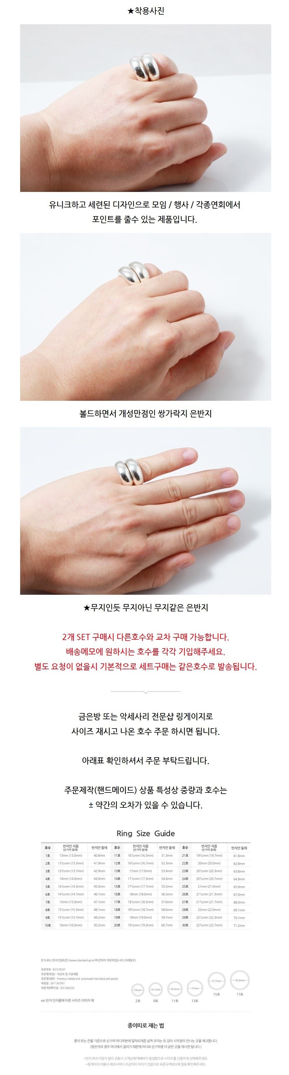 볼드한 쌍가락지 순은반지 925실버 남여공용 남자 여자 가족 선물 실버반지