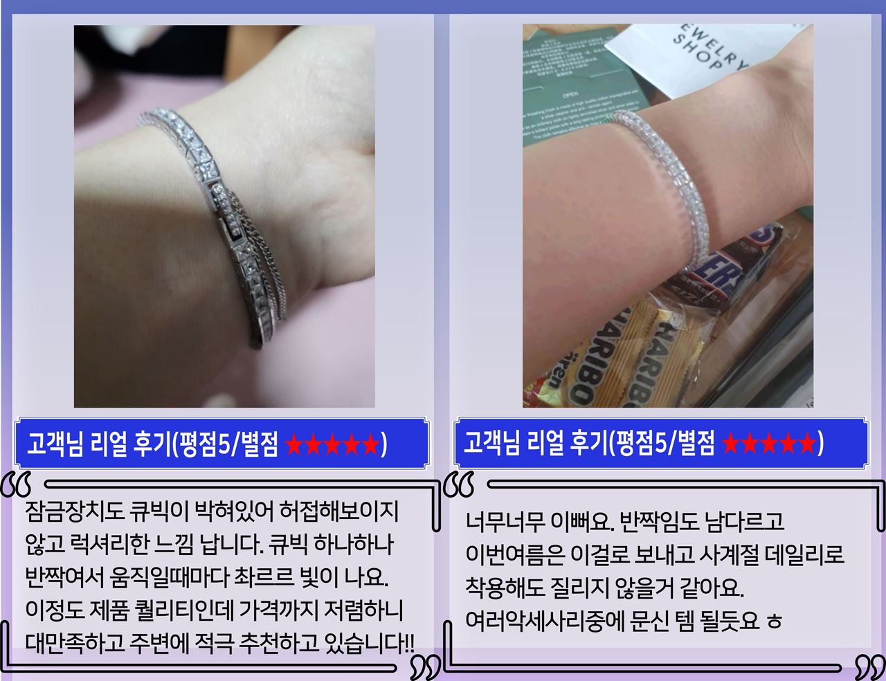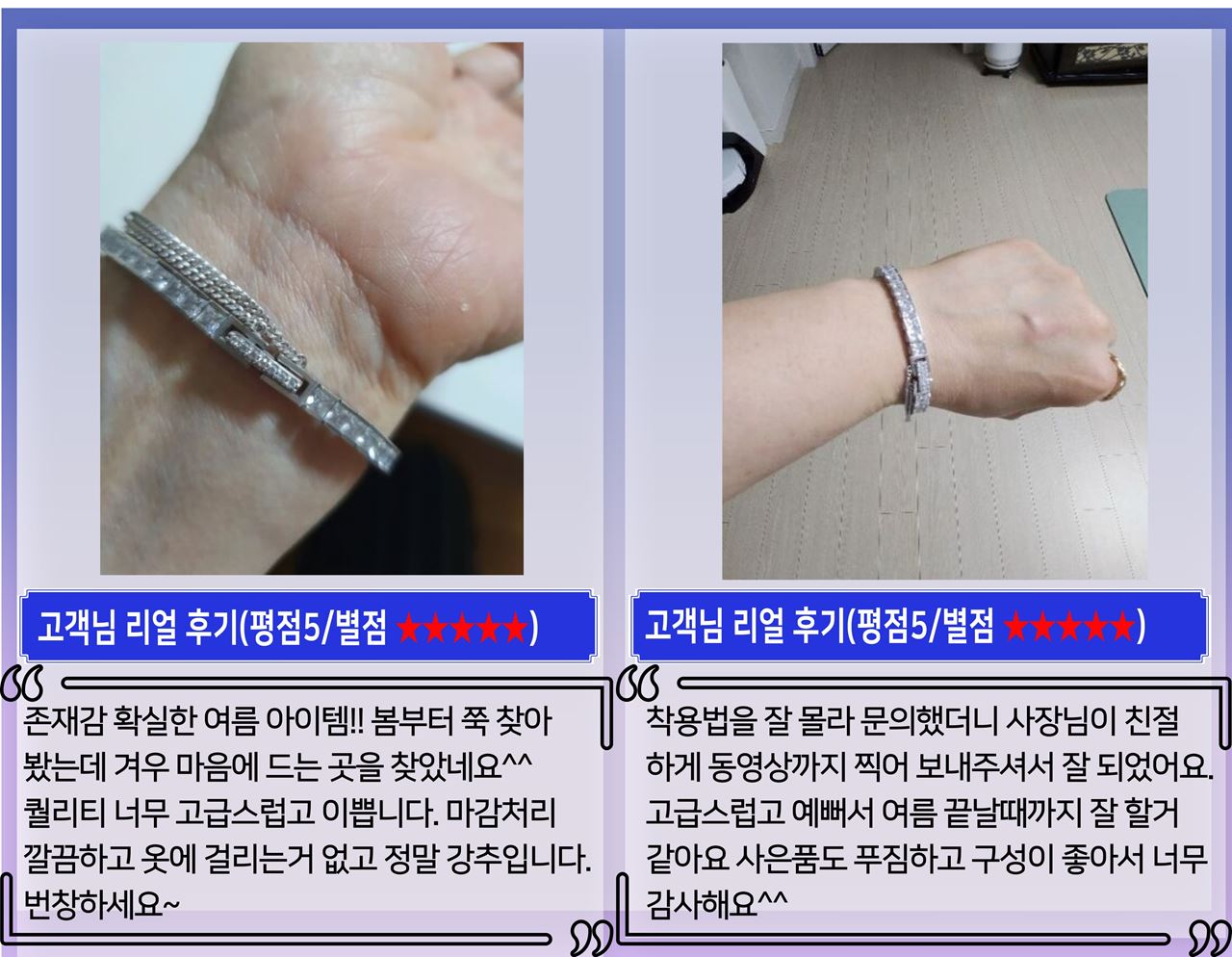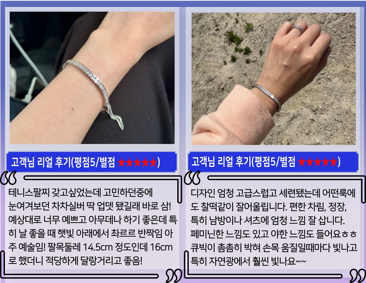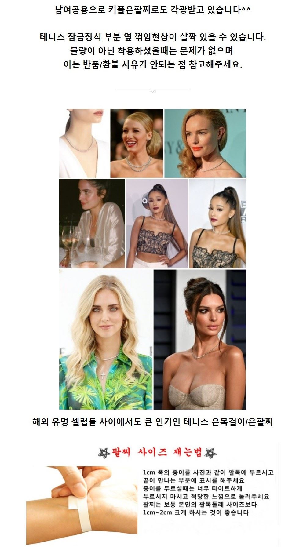 | 착용 시 주의사항 | -미 착용시 부드러운 천으로 닦은 후 비닐팩 보관 / 사우나, 온천, 바닷물 착용금지 (무도금 외에 제품은 세척액 사용금지) -물기는 최대한 멀리해주시고 물기가 묻으면 바로 닦아주시면 새상품처럼 오래도록 착용이 가능합니다. |