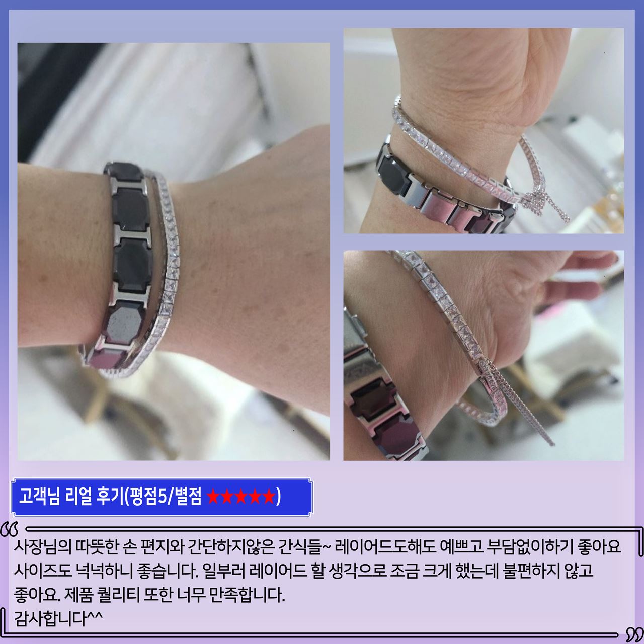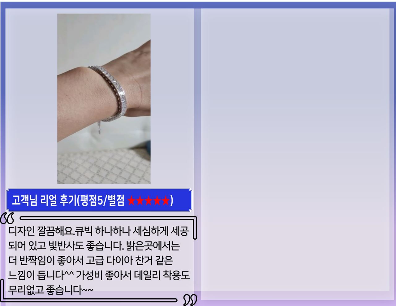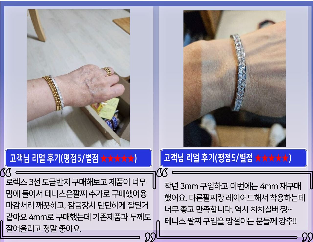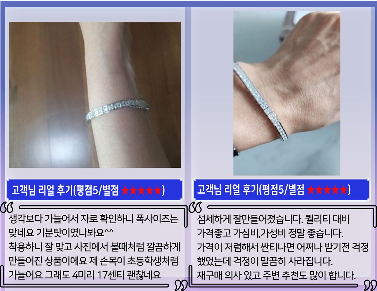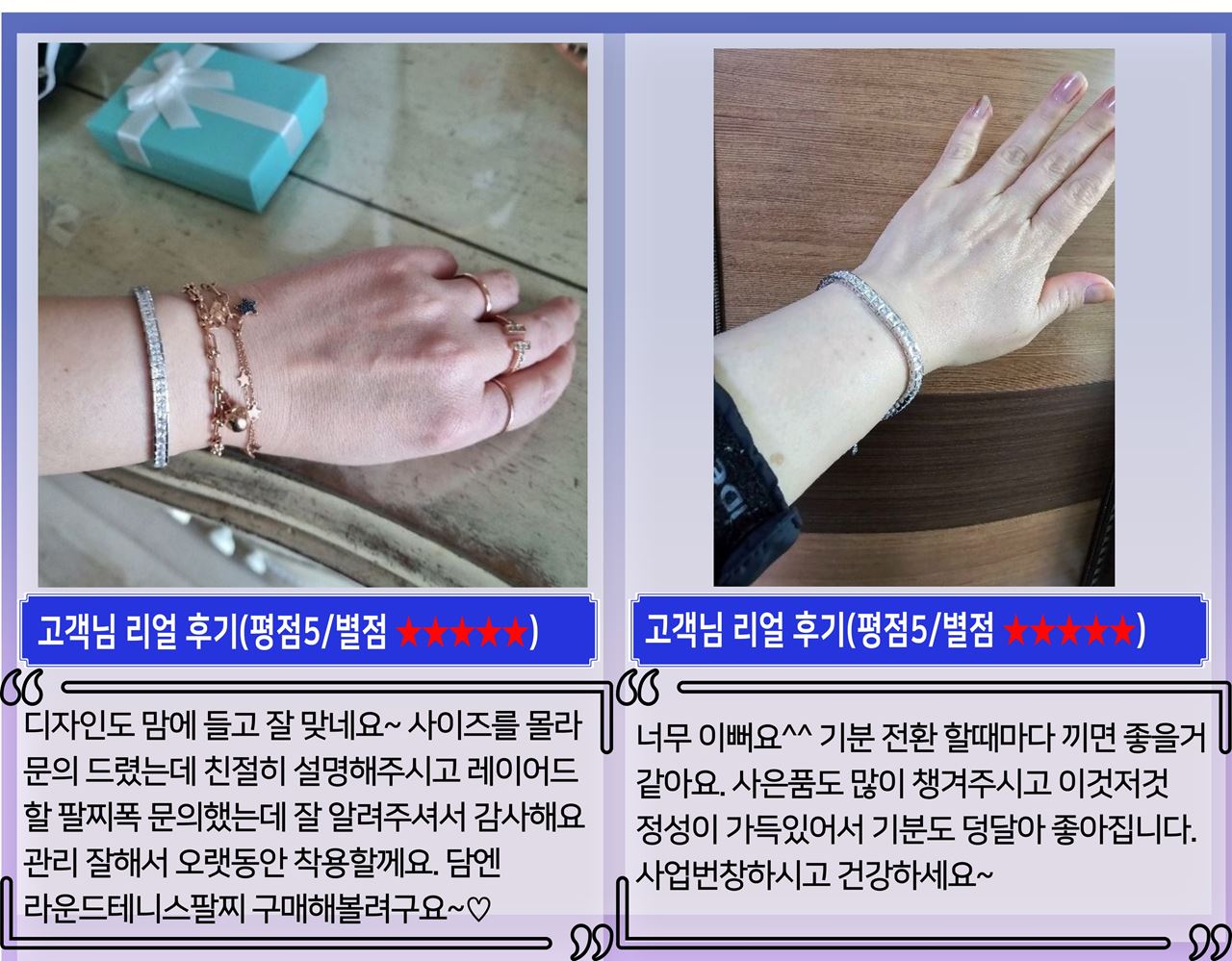 | 착용 시 주의사항 | -미 착용시 부드러운 천으로 닦은 후 비닐팩 보관 / 사우나, 온천, 바닷물 착용금지 (무도금 외에 제품은 세척액 사용금지) -물기는 최대한 멀리해주시고 물기가 묻으면 바로 닦아주시면 새상품처럼 오래도록 착용이 가능합니다. |