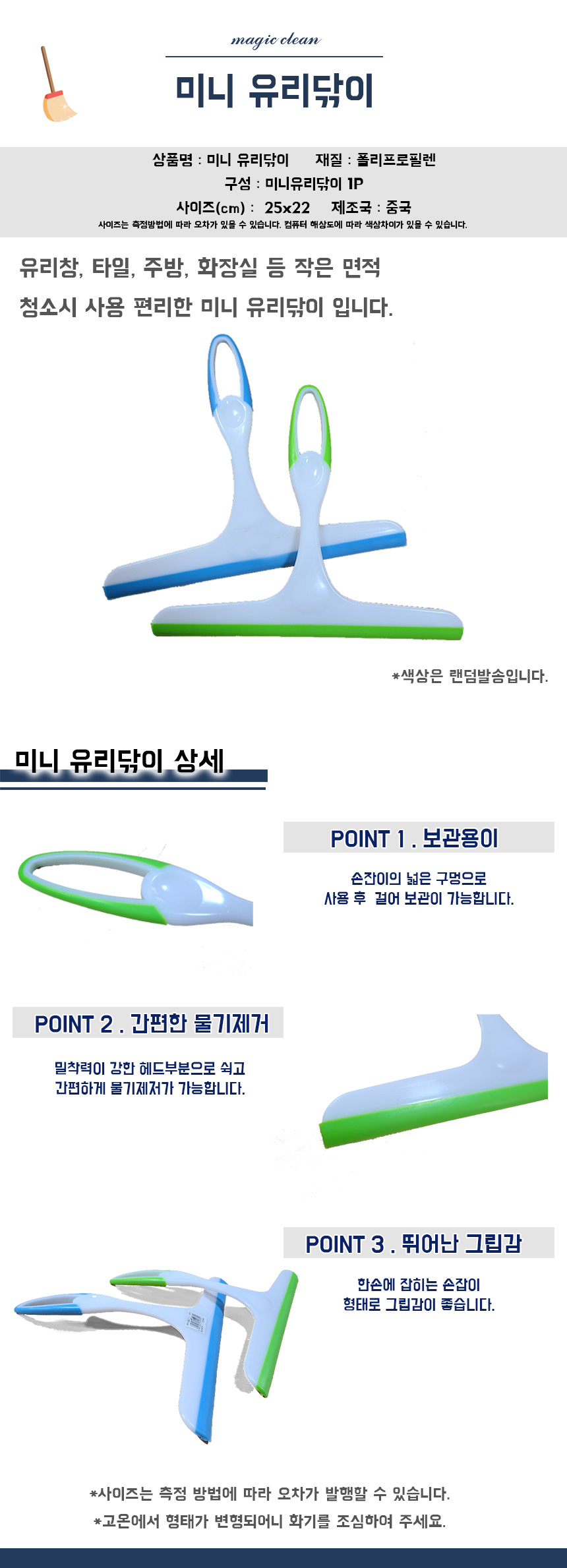 • 미니 유리닦이/핸드와이퍼 거울 청소 스퀴지 물떼제거