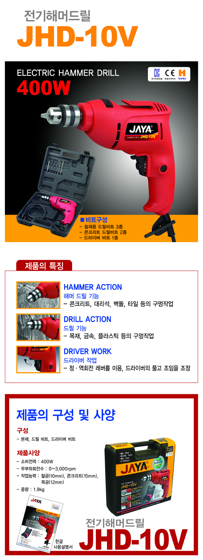 • 자야 유선 햄머 전기드릴 JD-6VR, 해머/함마/속도조절