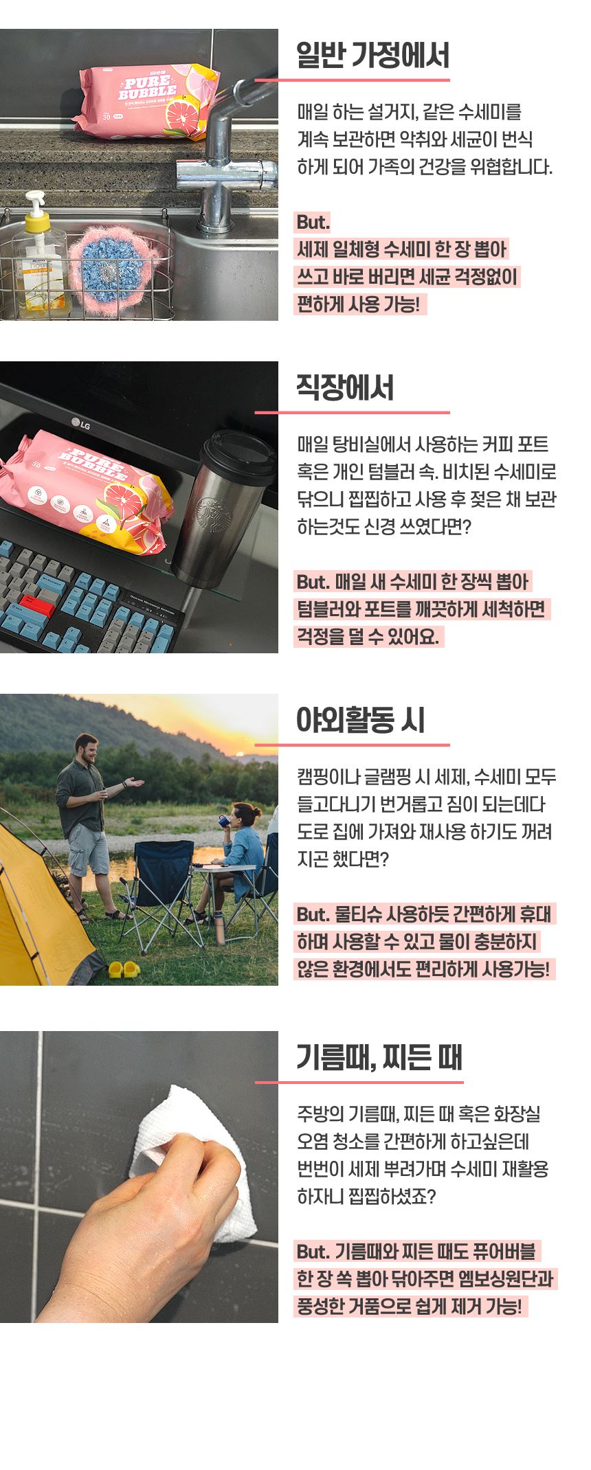 • 퓨어버블 일회용수세미 뽑아쓰는 강력세제일체형 다목적 수세미 10개(x30매입)