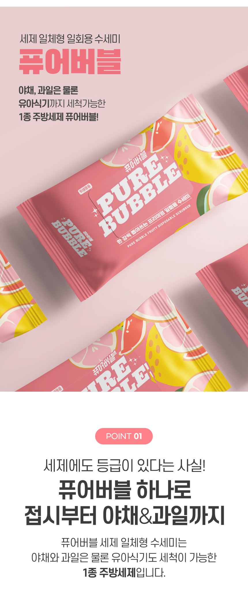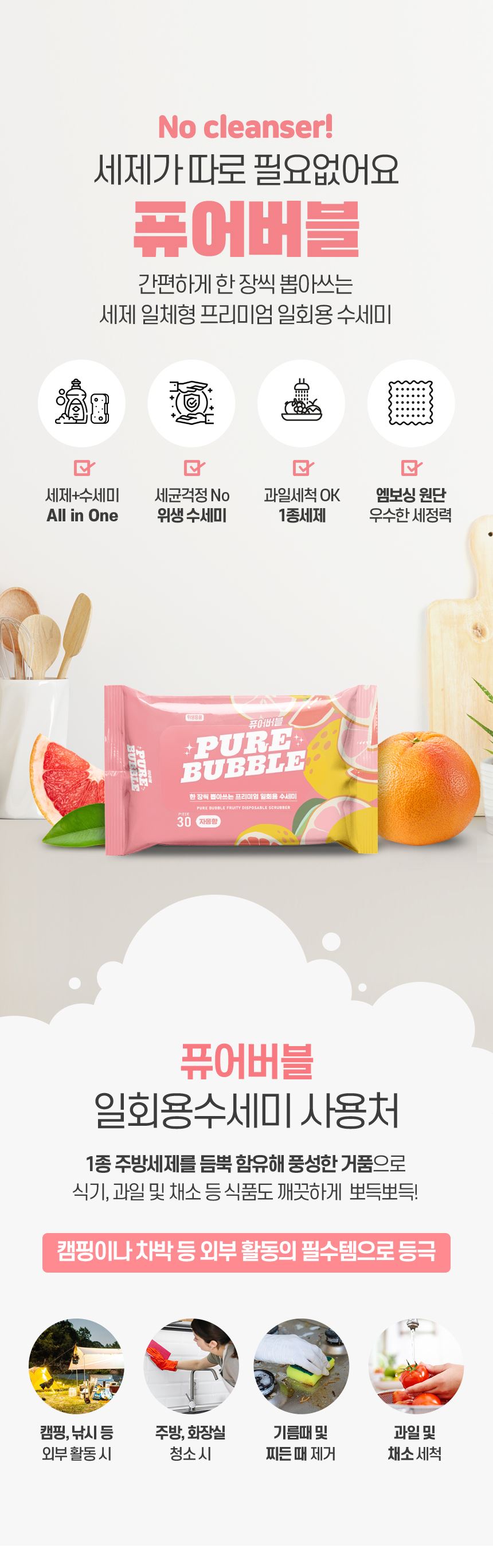 퓨어버블 일회용수세미 뽑아쓰는 강력세제일체형 다목적 수세미 10개(x30매입)