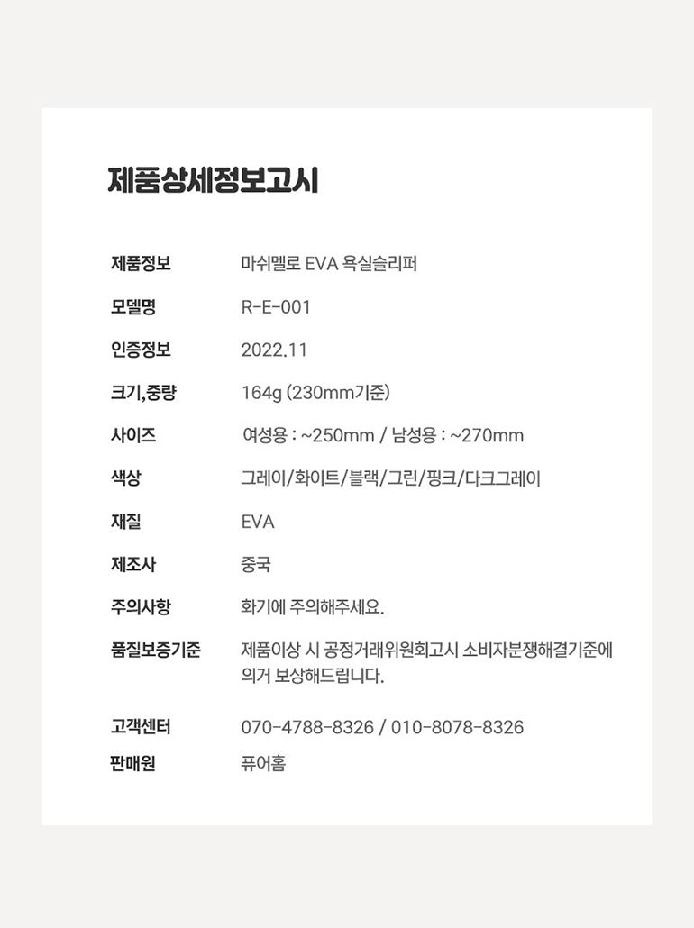 ㆍ 사용 중 발생한 하자의 환불/교환/수리 등은 공정거래위원회 소비자분쟁해결기준에 준하여 처리됩니다. (제조사/브랜드 A/S센터로 문의)