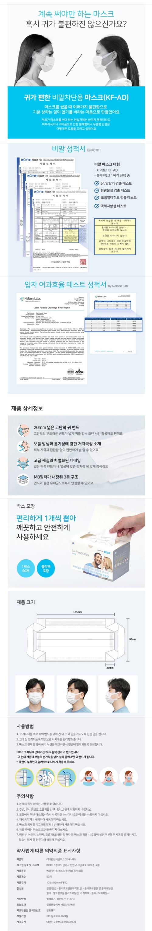 (임박특가할인) KF-AD 레이 편한 비말마스크 50매