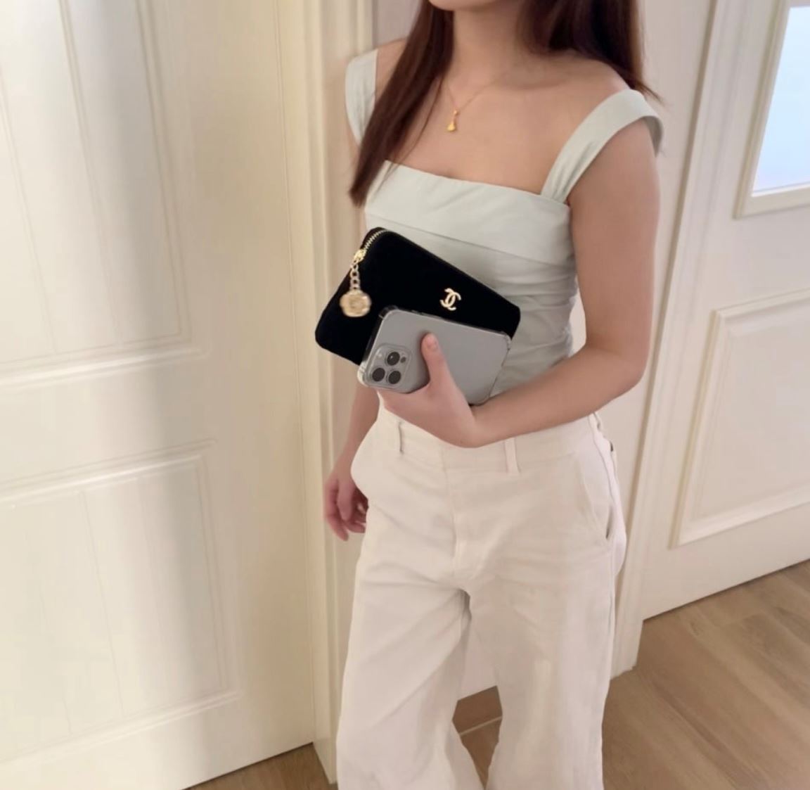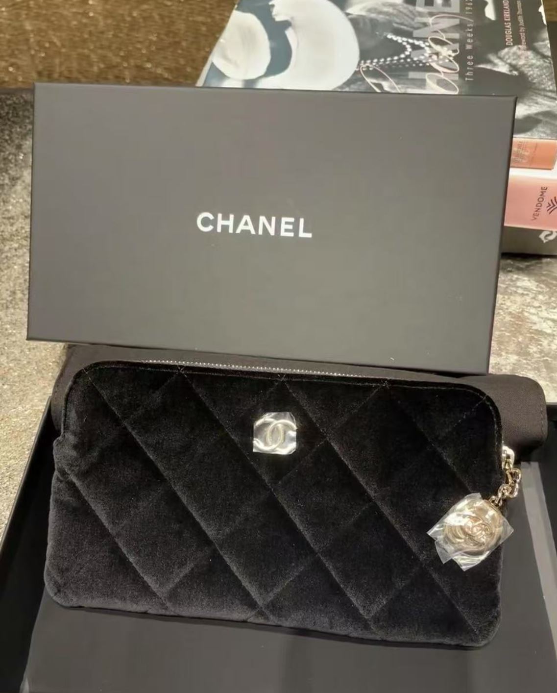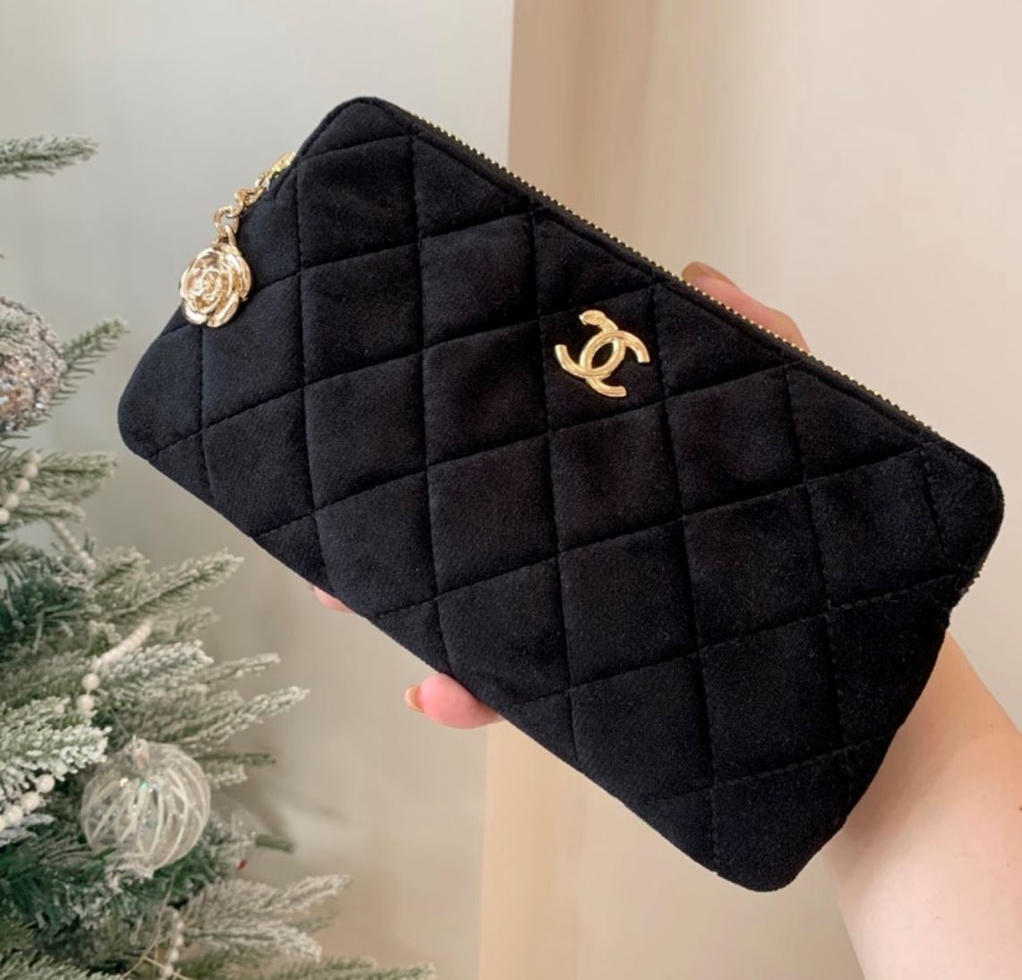샤넬 노벨티 까멜리아 벨벳 클러치 장지갑