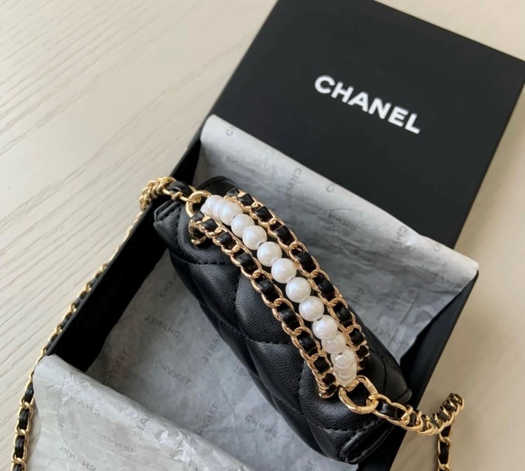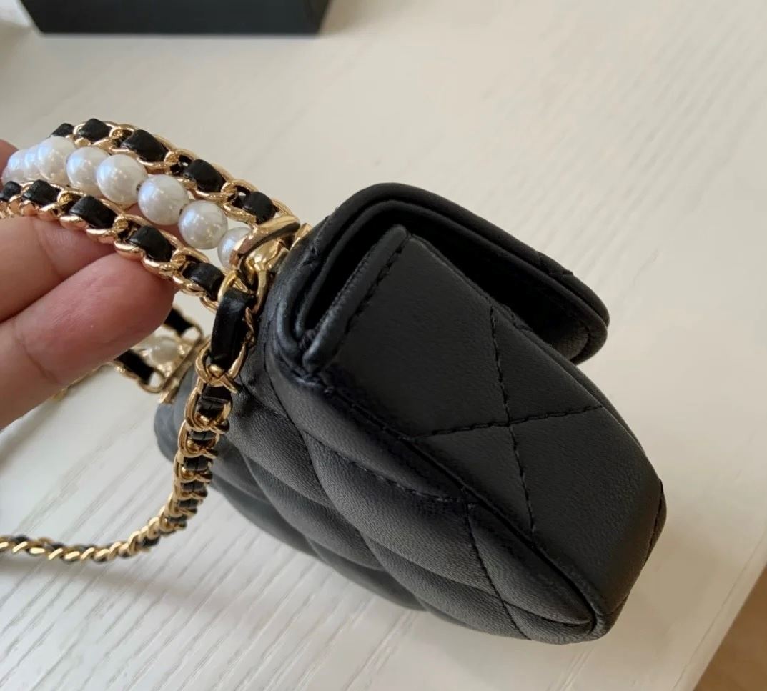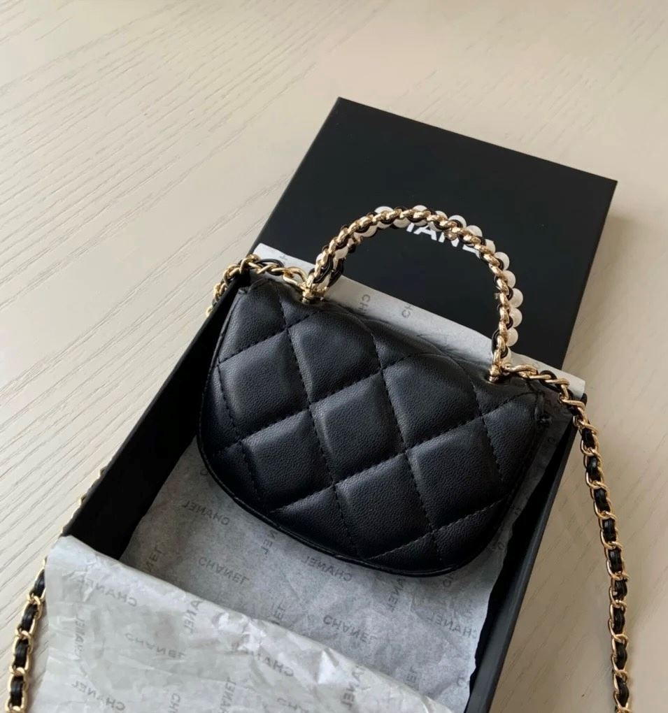 • 샤넬 노벨티 진주 핸들 미니 반달백 크로스백