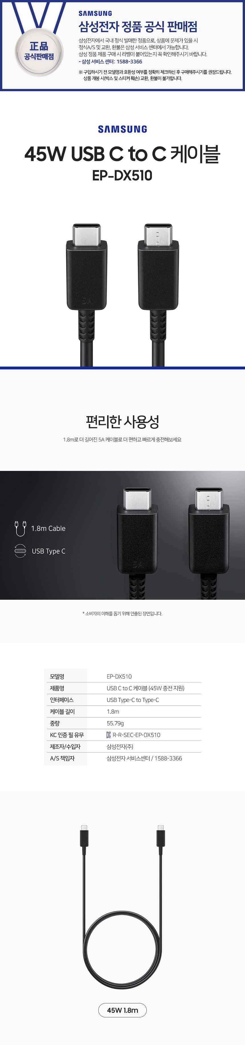 품명 삼성 정품 45W USB C to C 케이블 1.8M