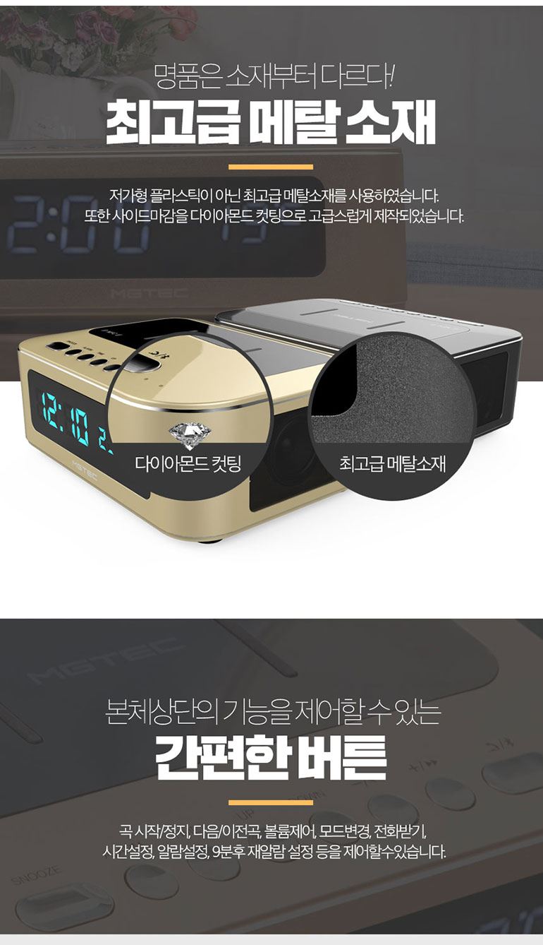 락클래식 QI/무선충전기/블루투스스피커/올인원 시계 온도 알람  블랙,골드 / 디지몰 / 디비디비 / 구매하기 / 특가할인