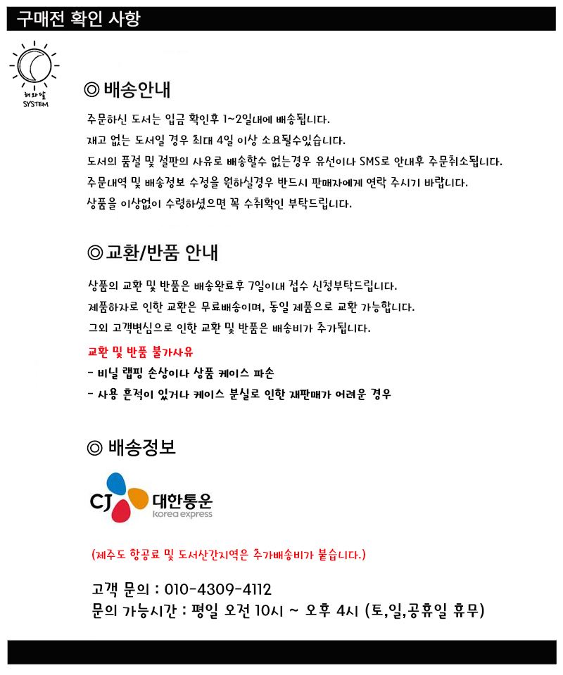 ㆍ 반품, 교환을 원하시는 경우 1:1문의나 주문서에 안내 해 드리고 있는 연락처로 연락 주시면 신속한 처리가 가능합니다.