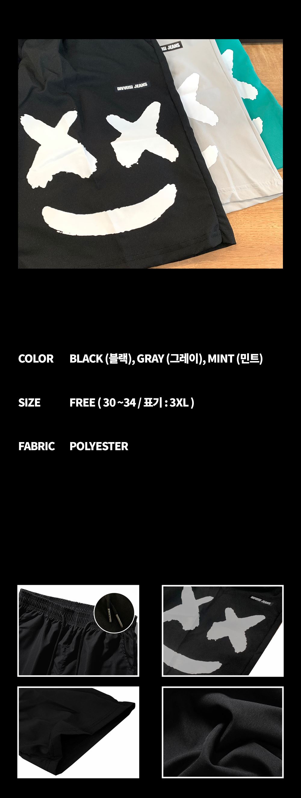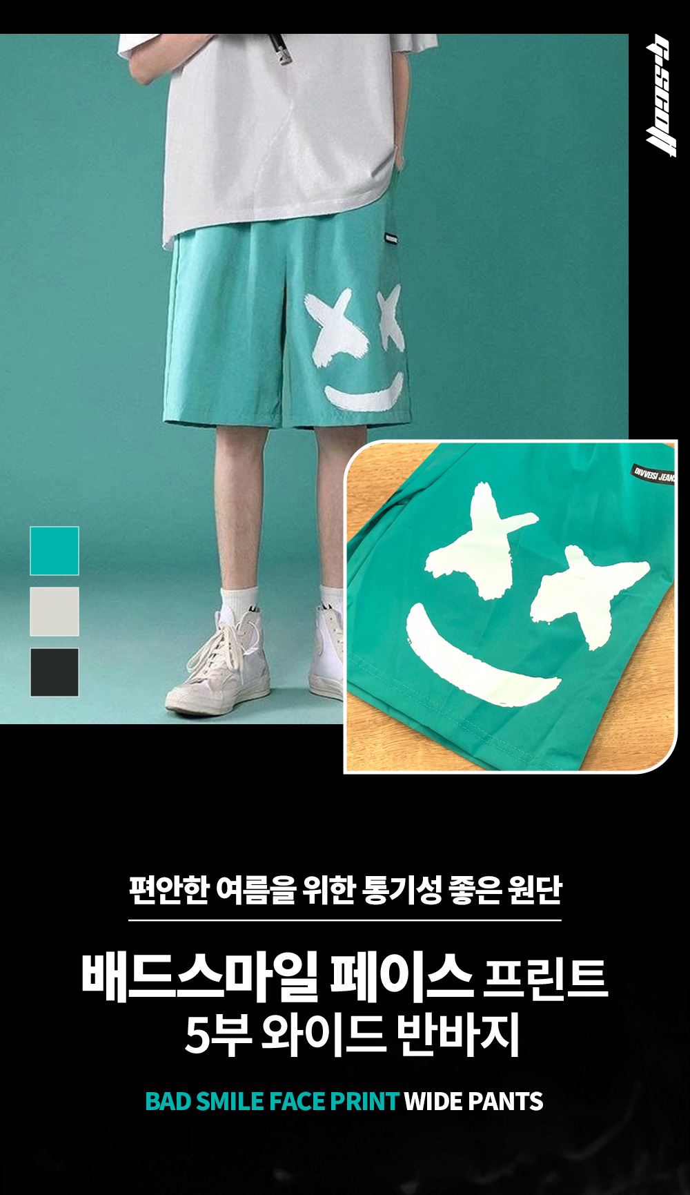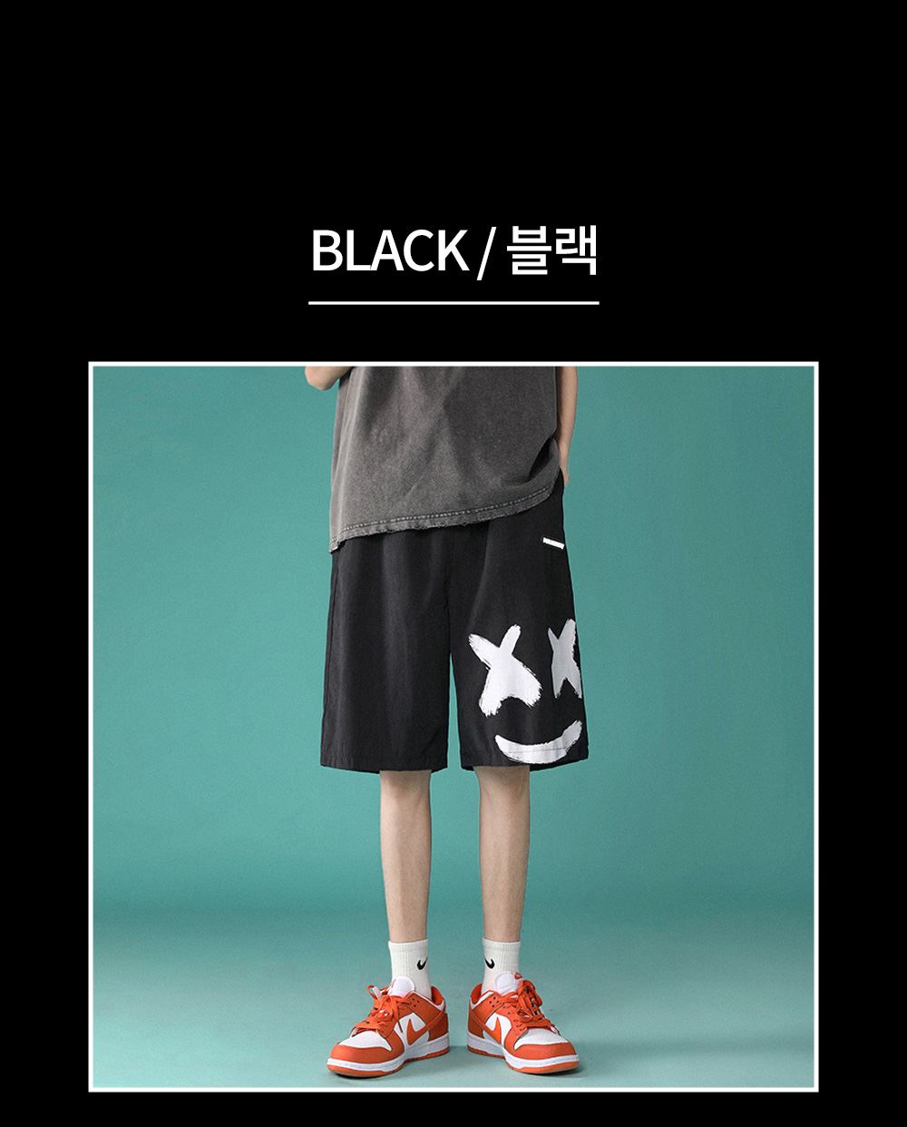배드스마일 페이스 프린트 5부 와이드 반바지 ( 3COLOR )