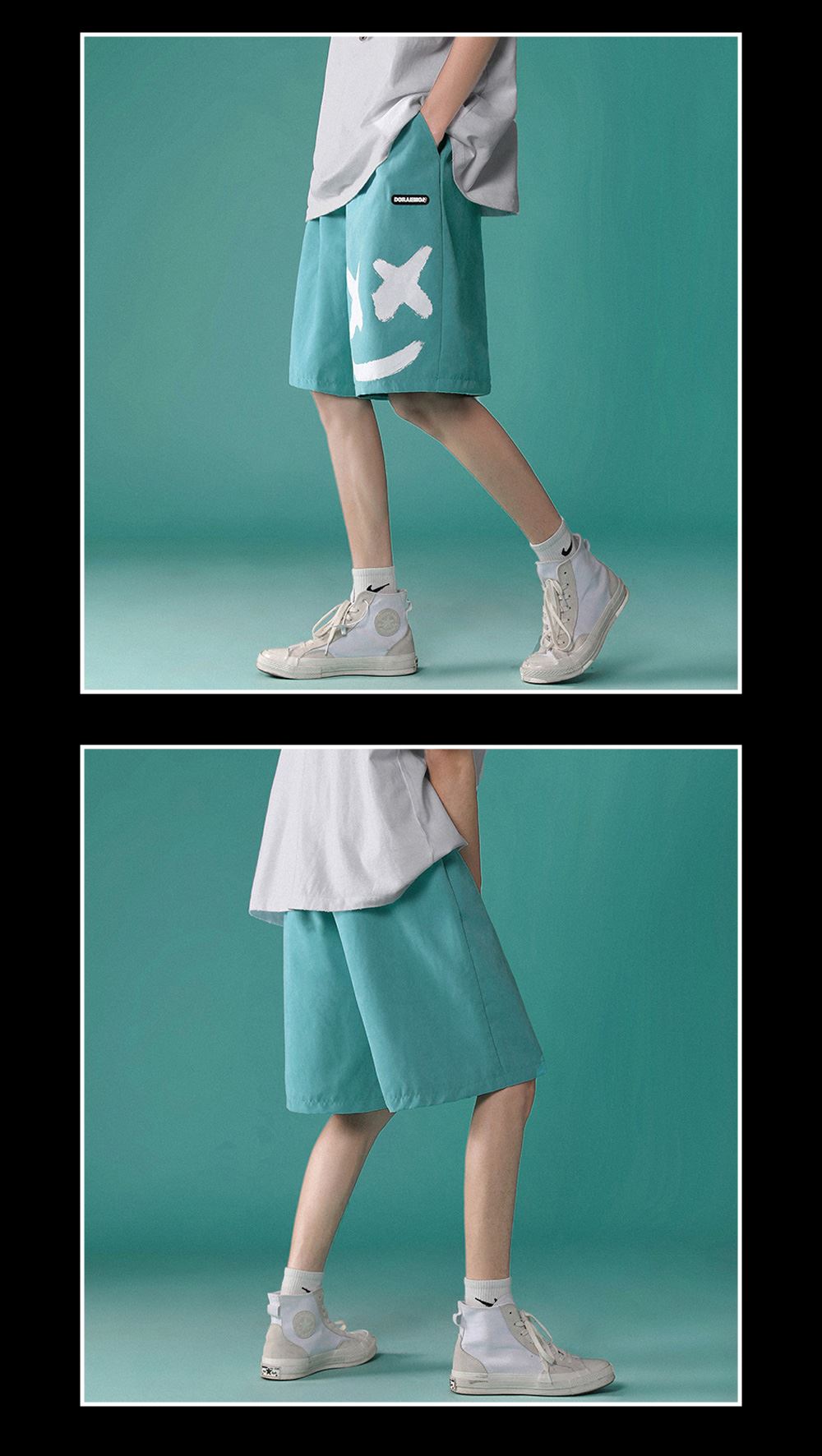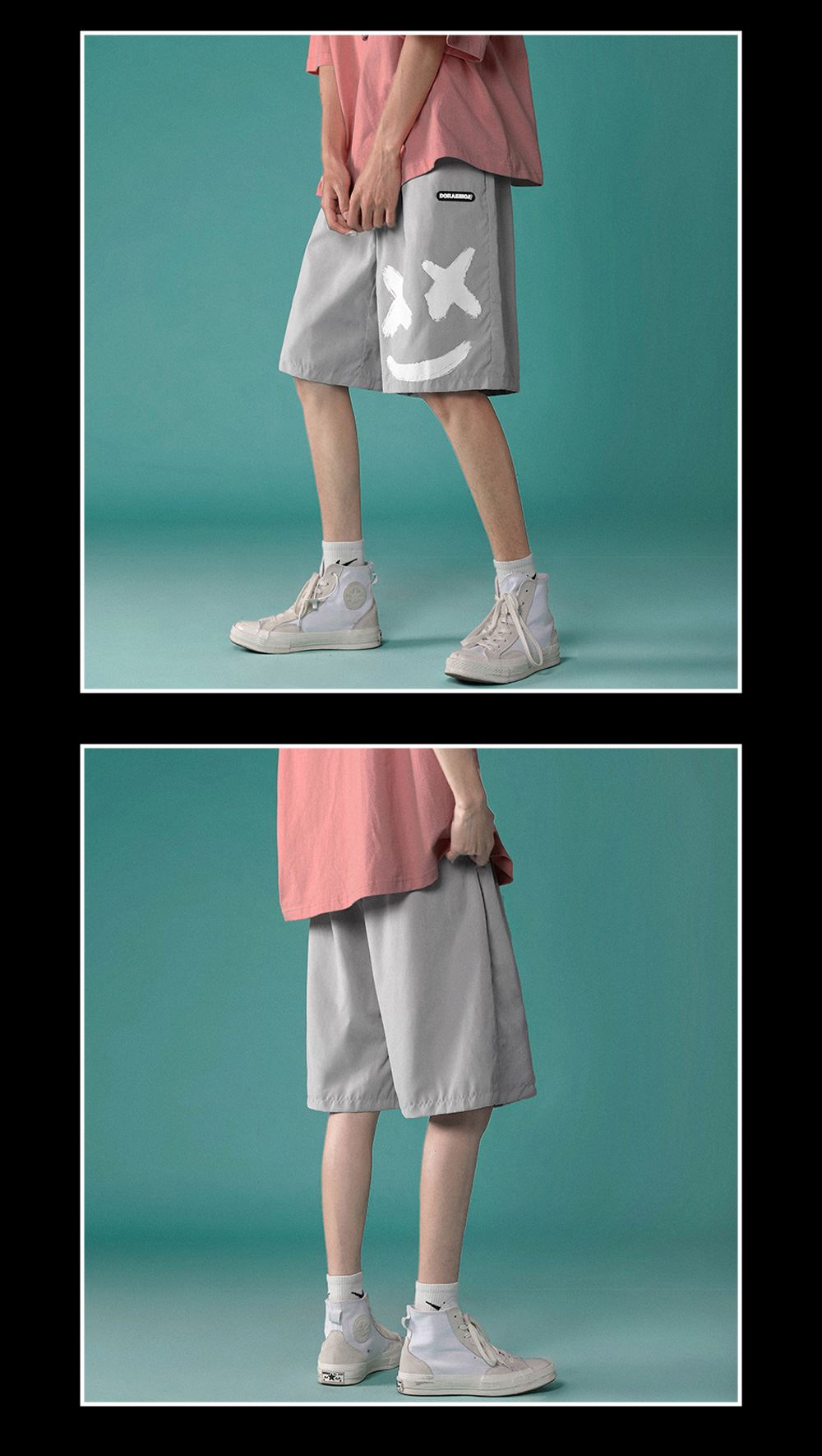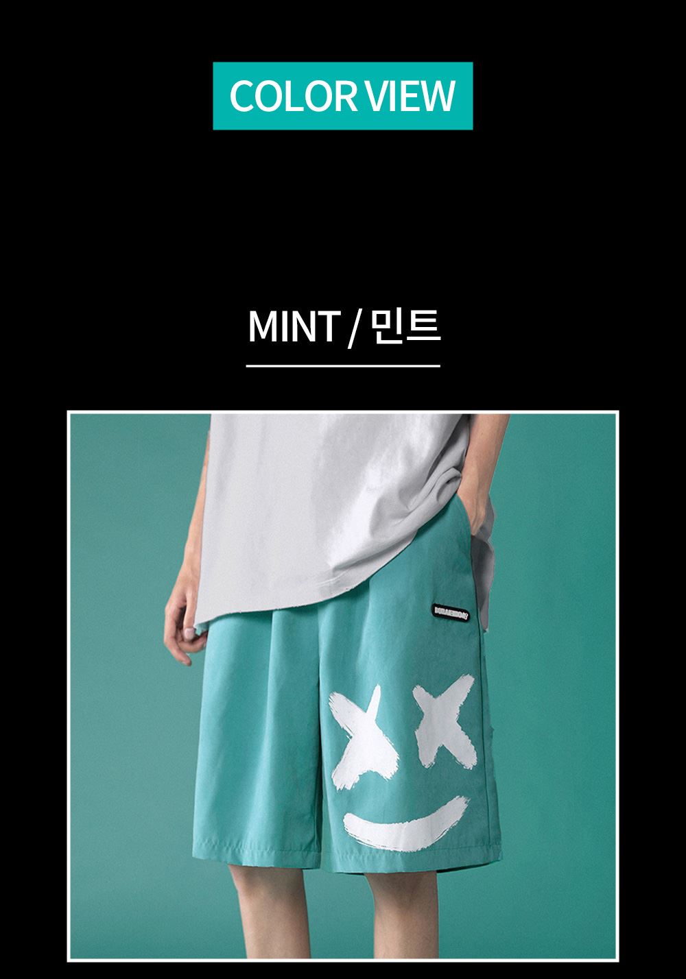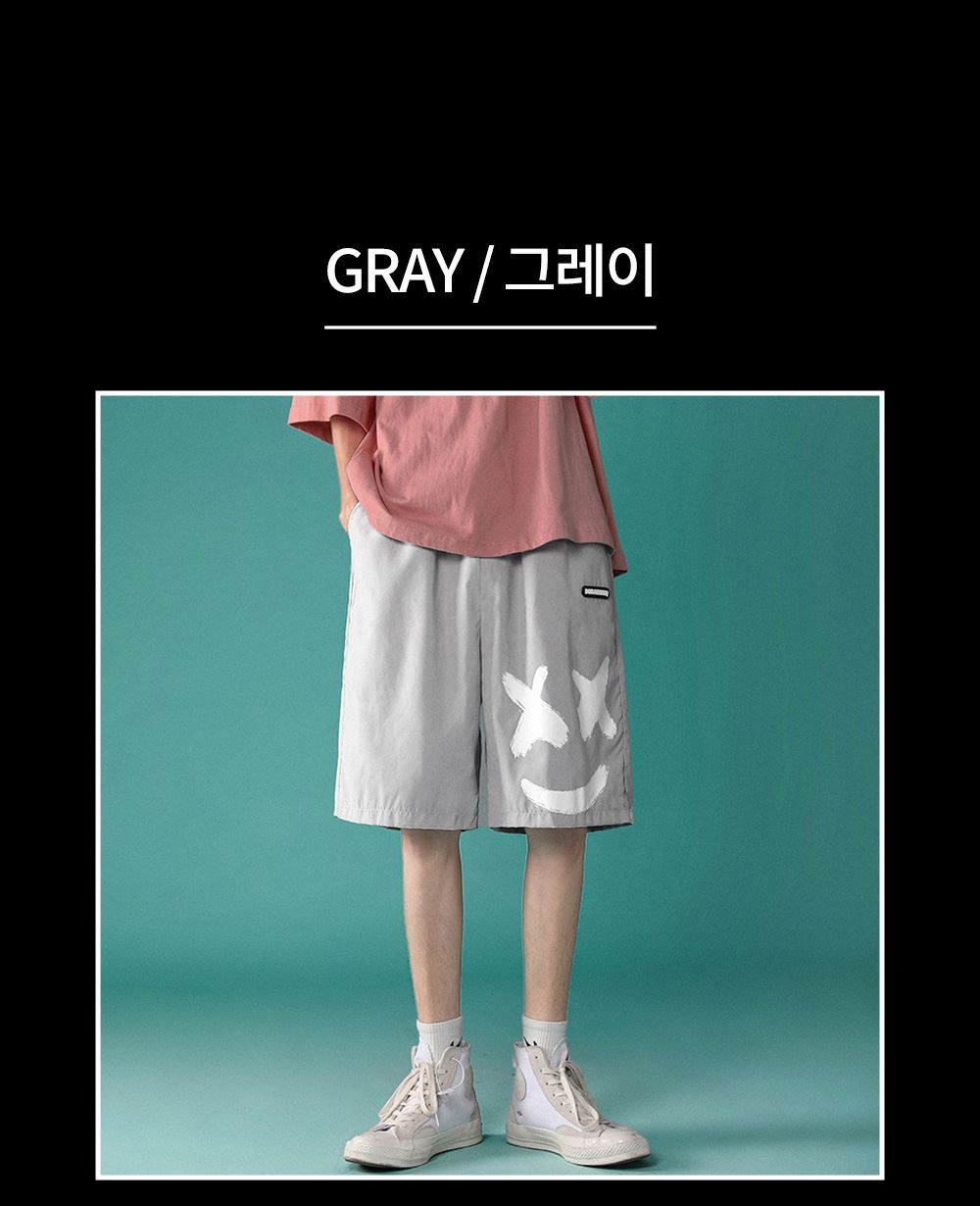 배드스마일 페이스 프린트 5부 와이드 반바지 ( 3COLOR )