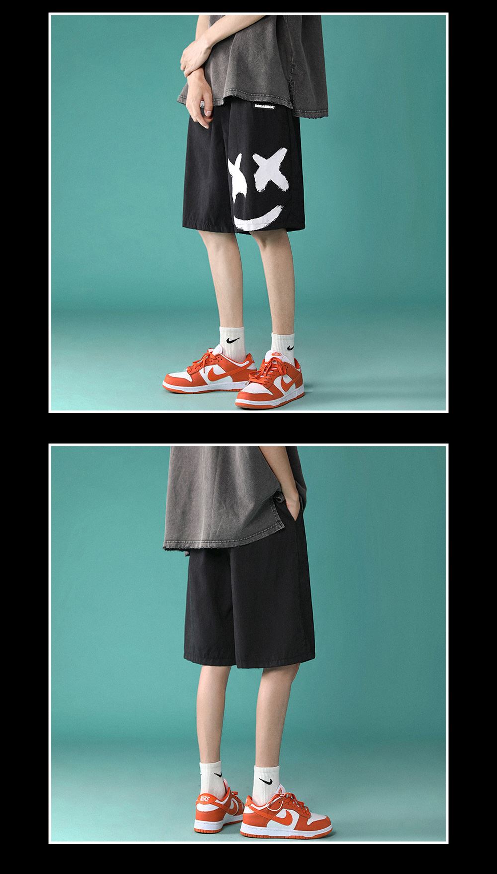 '배드스마일 페이스 프린트 5부 와이드 반바지'