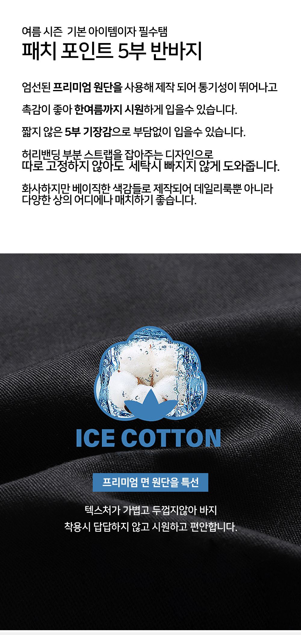 • 베이직 패치 포인트 밴딩 5부 여름 반바지 ( 5COLOR )