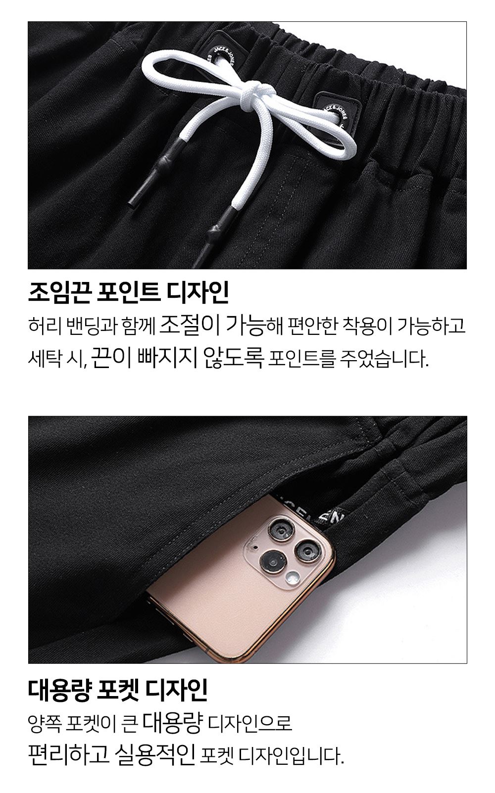 허리밴딩과 조임끈으로 사이즈 조절에 탁월한