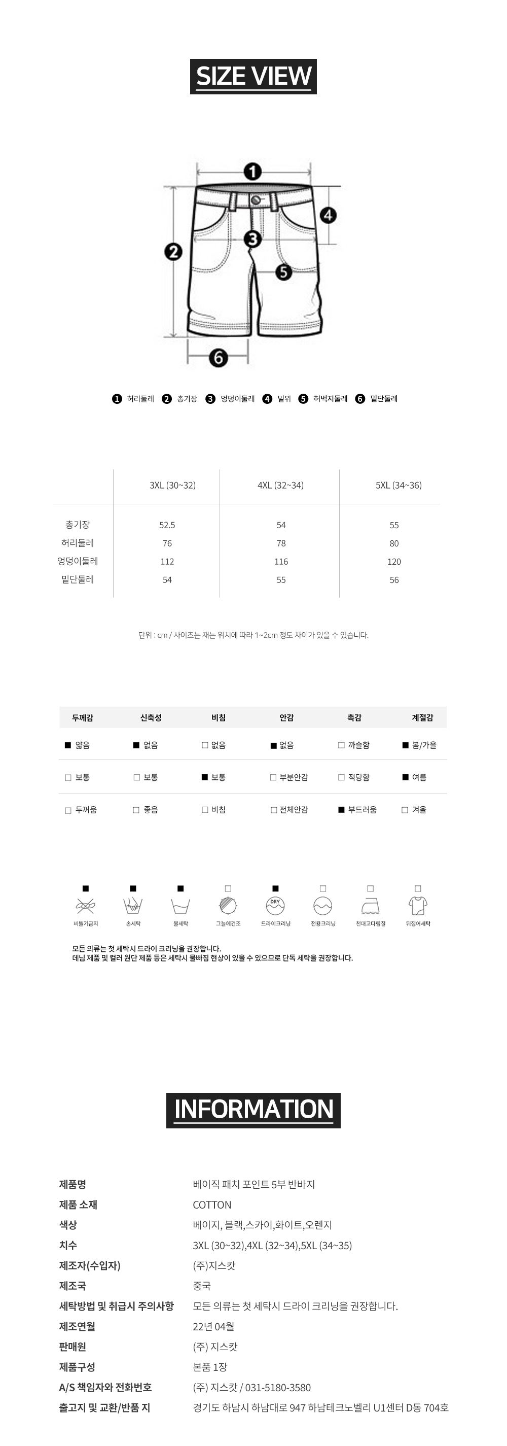 치수 3XL (30~32), 4XL (32~34), 5XL (34~36)