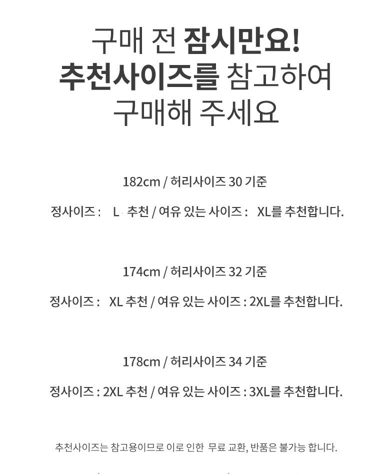 치수 L (30),XL (32),2XL (34),3XL (36)