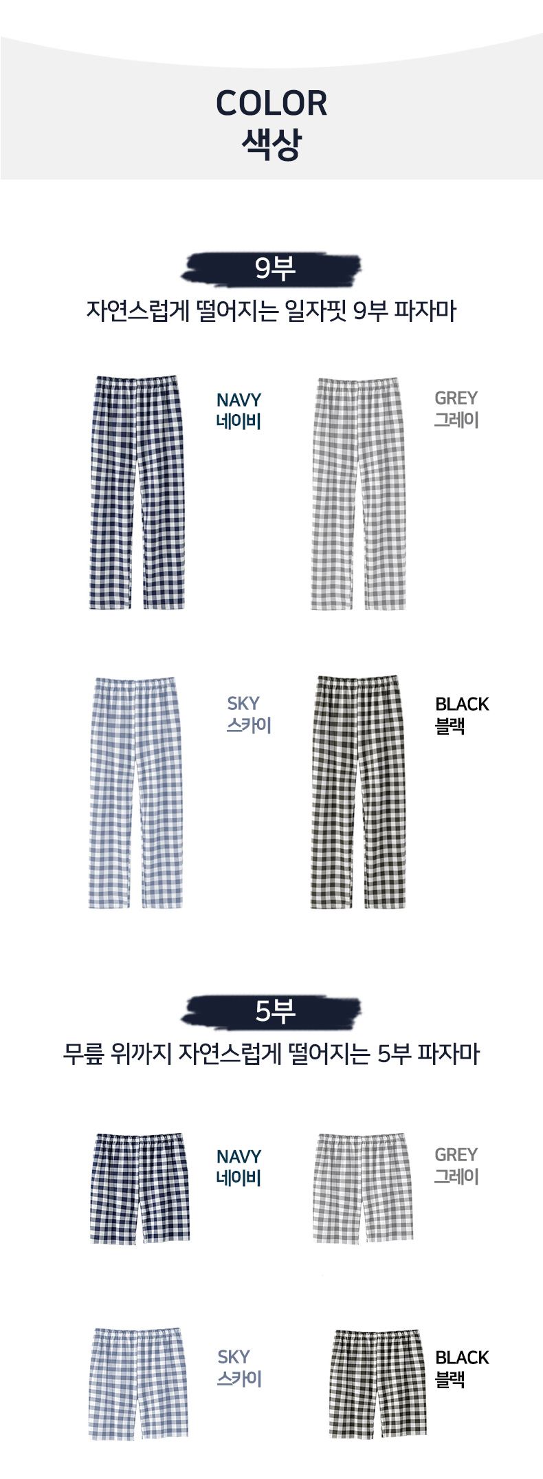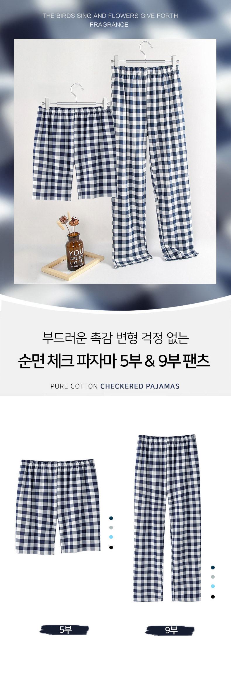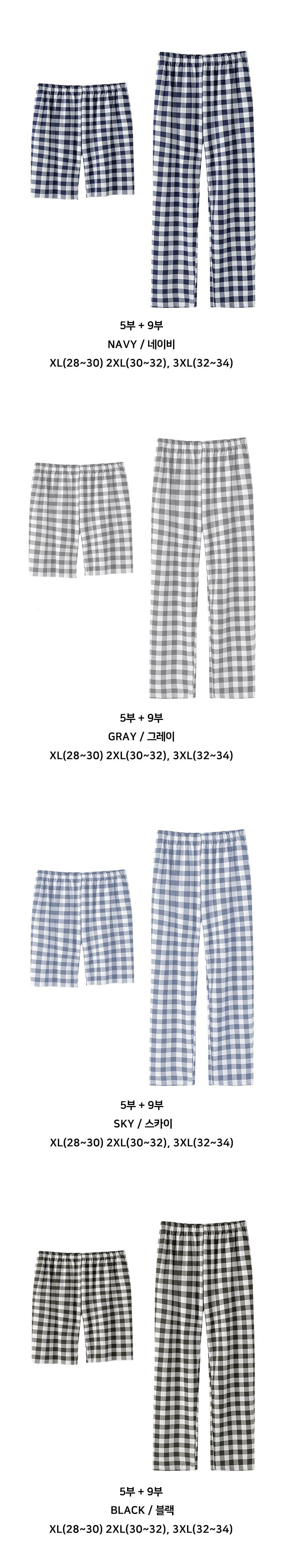 • 남녀공용 순면 체크 파자마 5부 & 9부 팬츠 ( 4COLOR )
