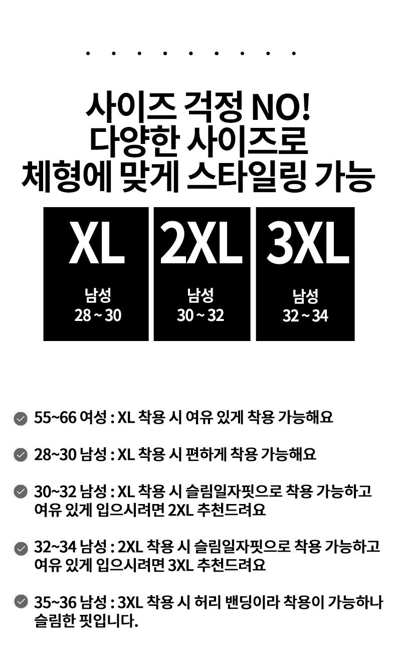 치수 XL (28~30),2XL (30~32),3XL (32~34)
