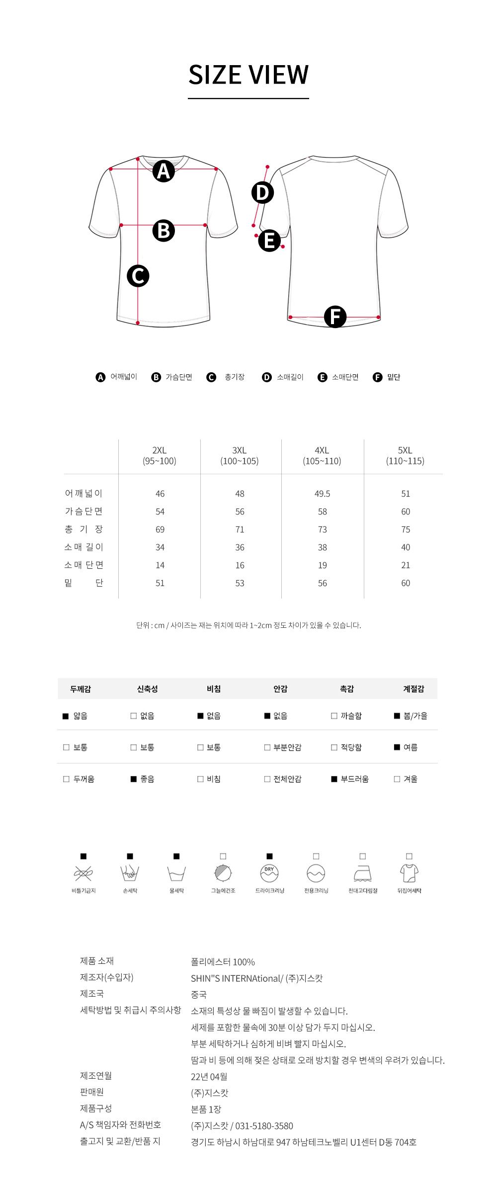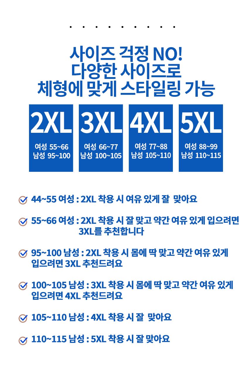 치수 2XL (95~100),3XL (100~105),4XL (105~110),5XL (110~115)