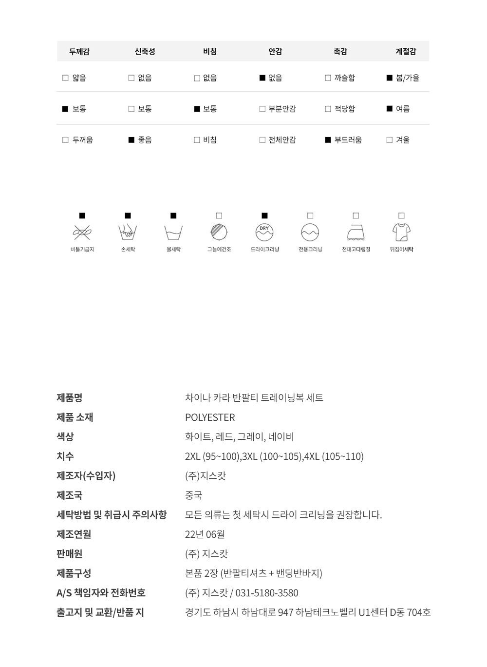 구김적고 탄탄한 폴리 소재 사용으로 한여름까지 시원한 착용감의