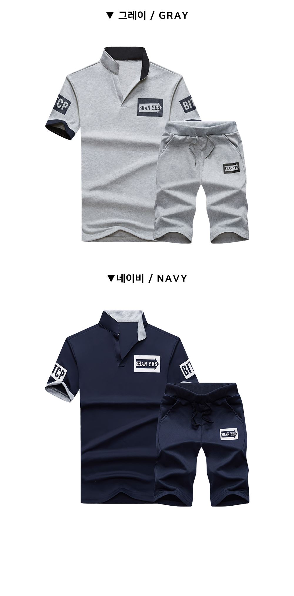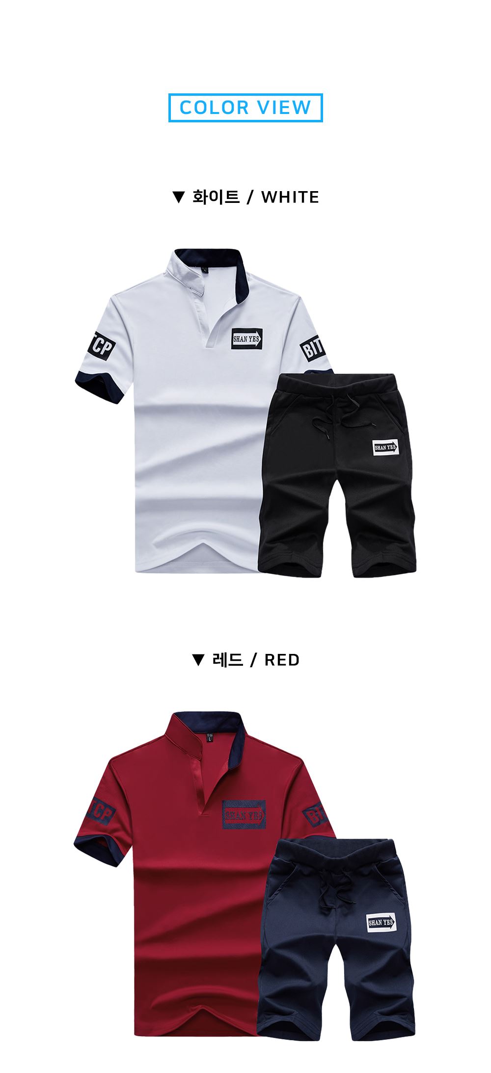 • 차이나카라 반팔티셔츠 트레이닝복 세트 (4COLOR)