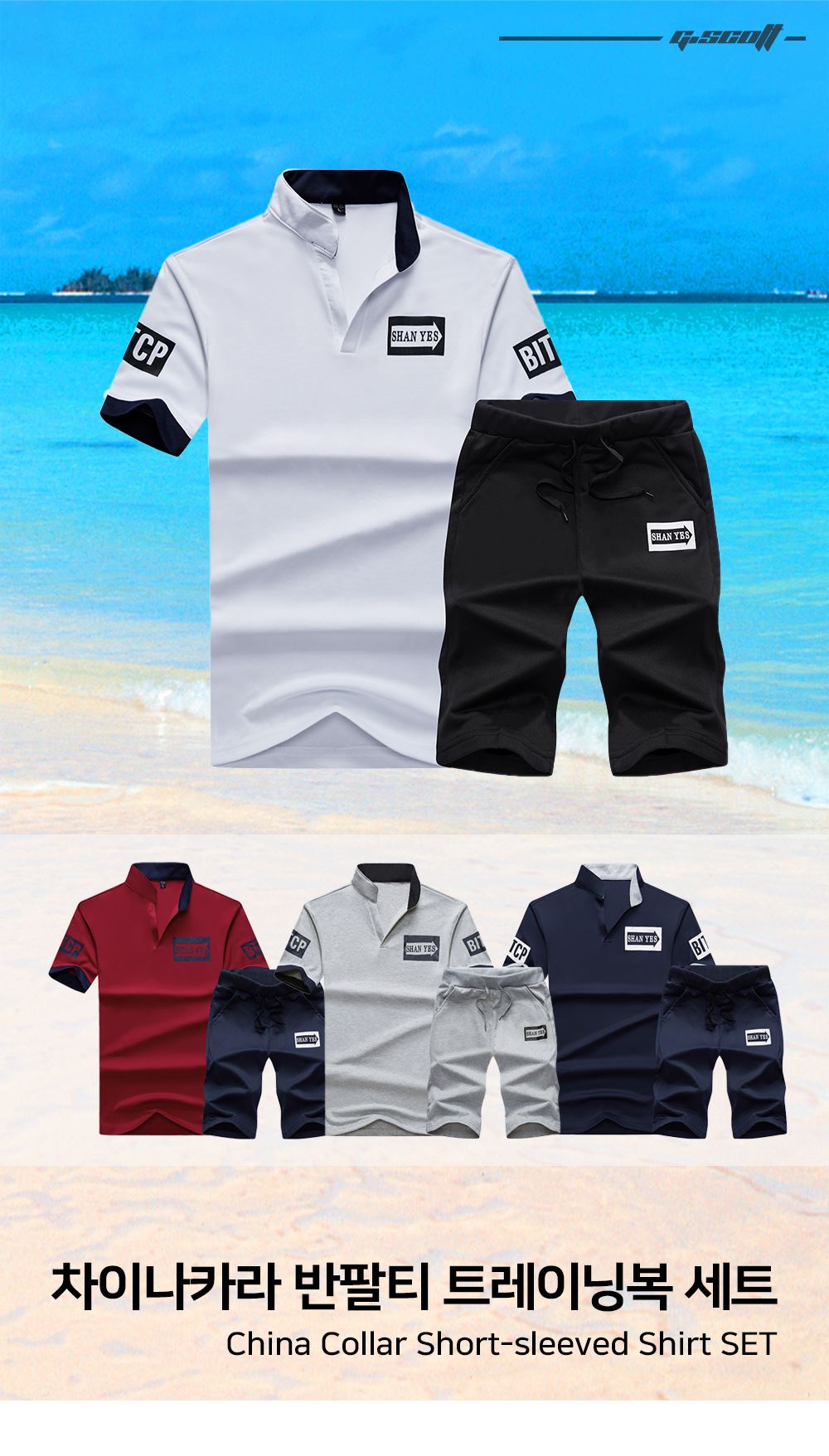 " 차이나카라 반팔 티셔츠 트레이닝복 세트 "