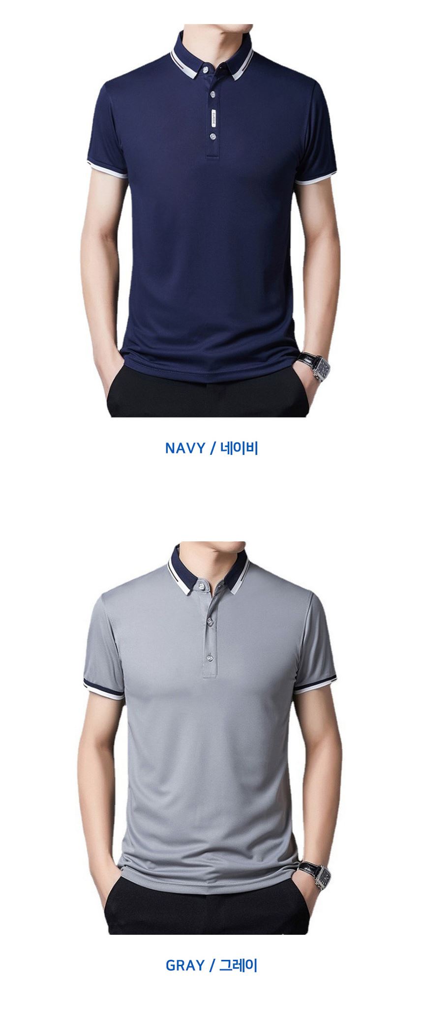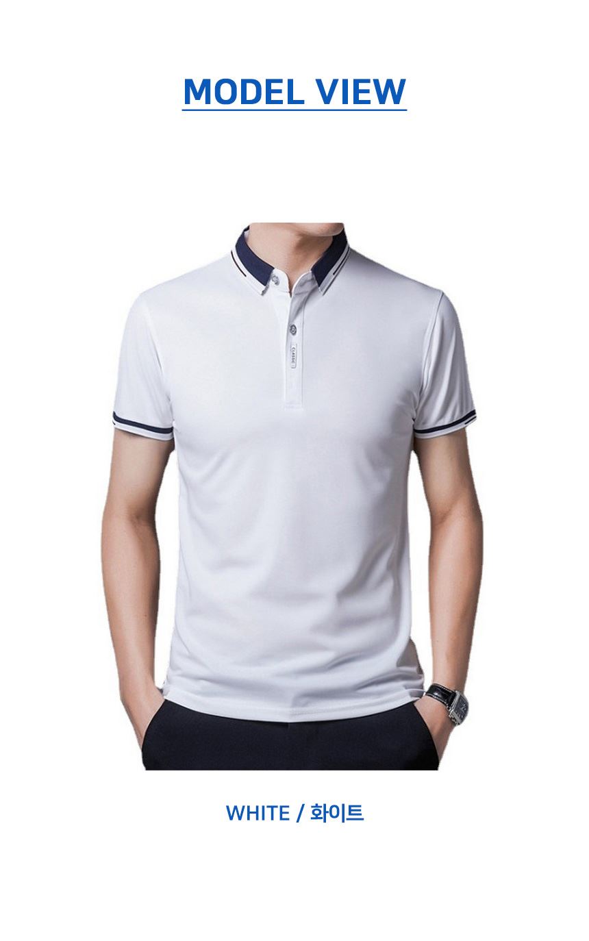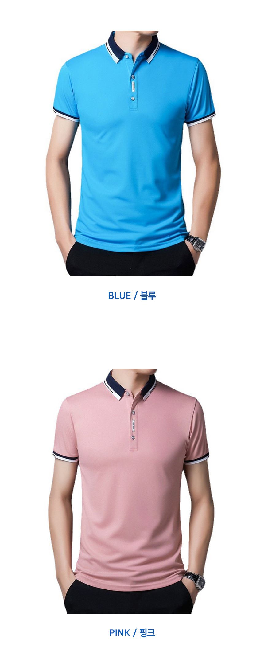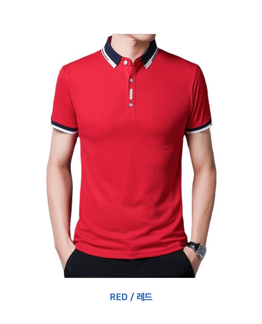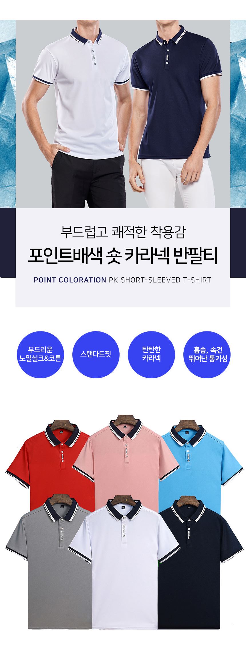 포인트 배색 숏 카라넥 반팔 티셔츠 ( 6COLOR )