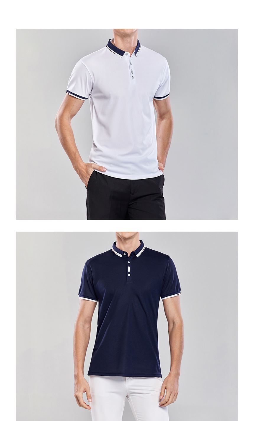 '포인트 배색 숏 카라넥 반팔 티셔츠"