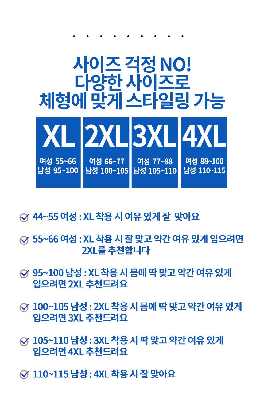 치수 XL (95~100),2XL (100~105),3XL (105~110),4XL (110~115)