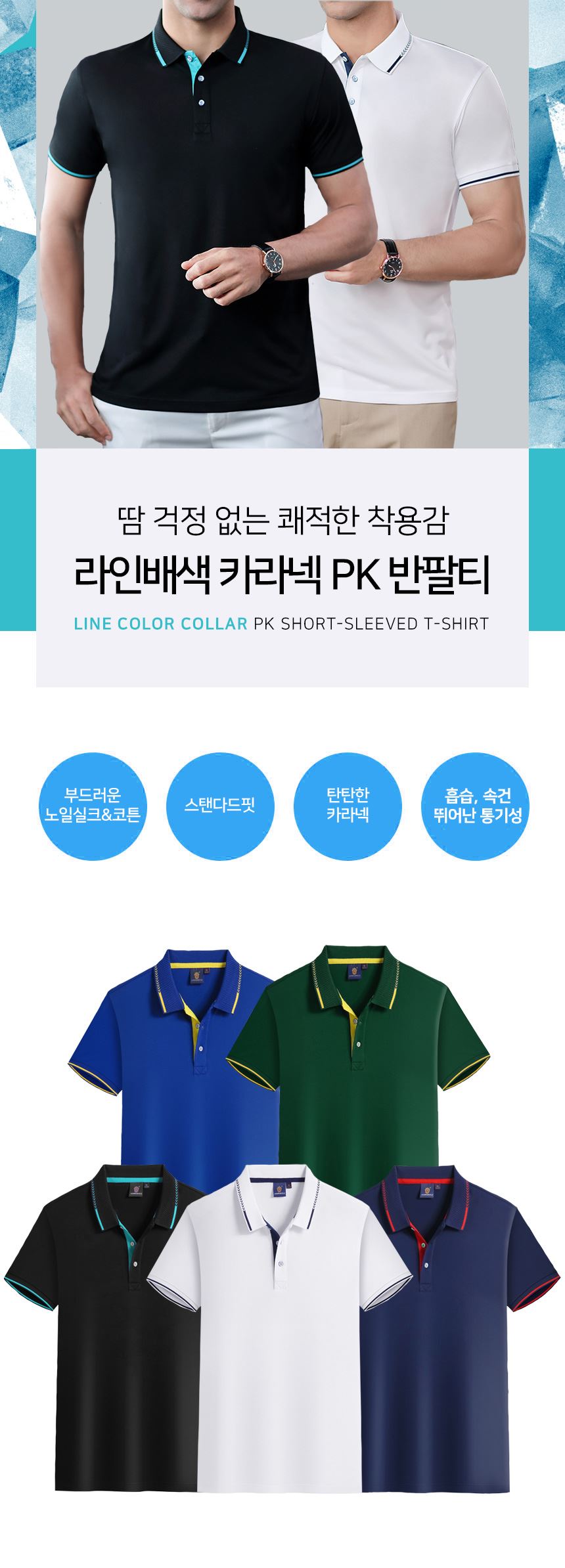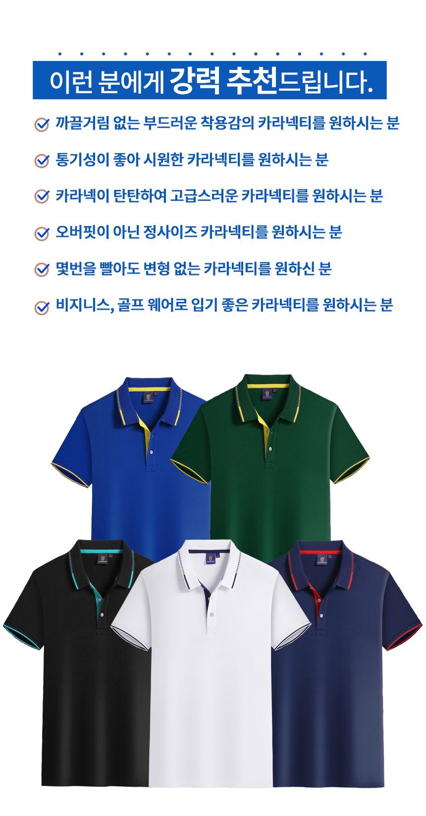 • 탄탄하고 변형 걱정 없는 고급 폴로 셔츠 라펠과