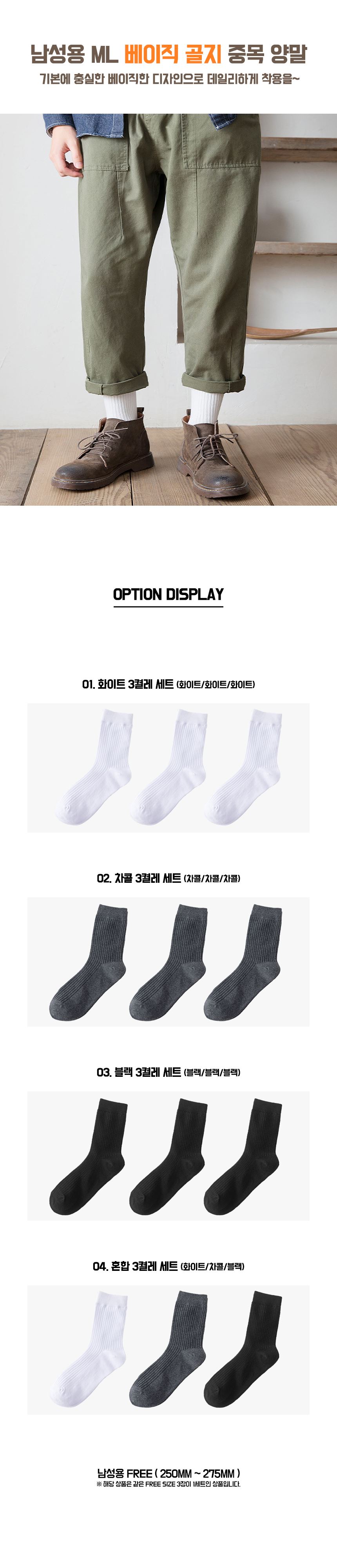 [SOC-010] 남성용 ML 베이직 골지 중목 양말 3켤레 세트