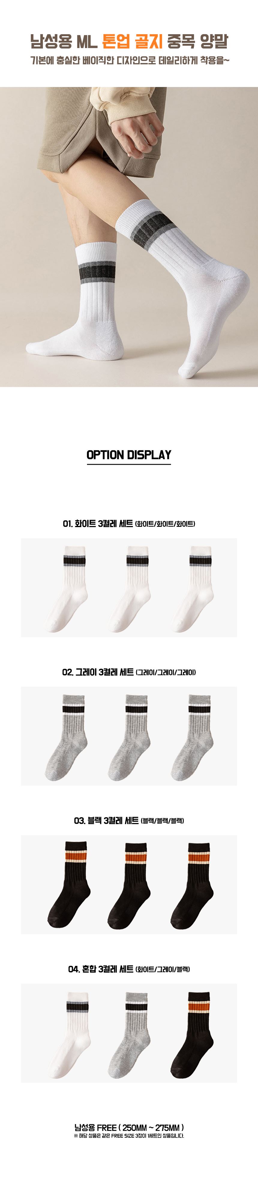 [SOC-012] 남성용 ML 톤업 골지 중목 양말 3켤레 세트