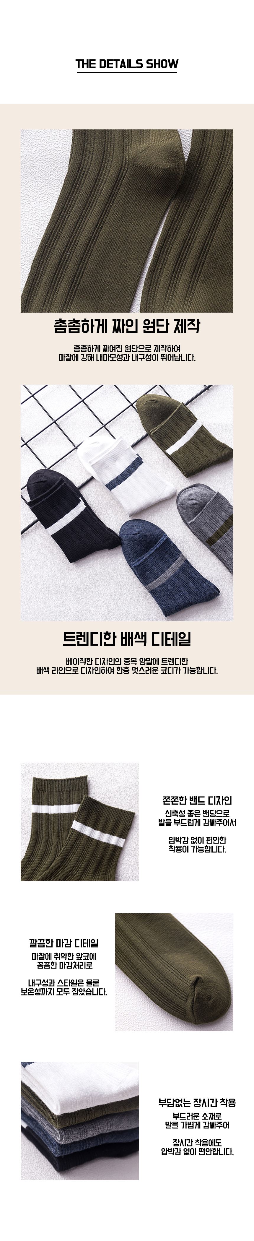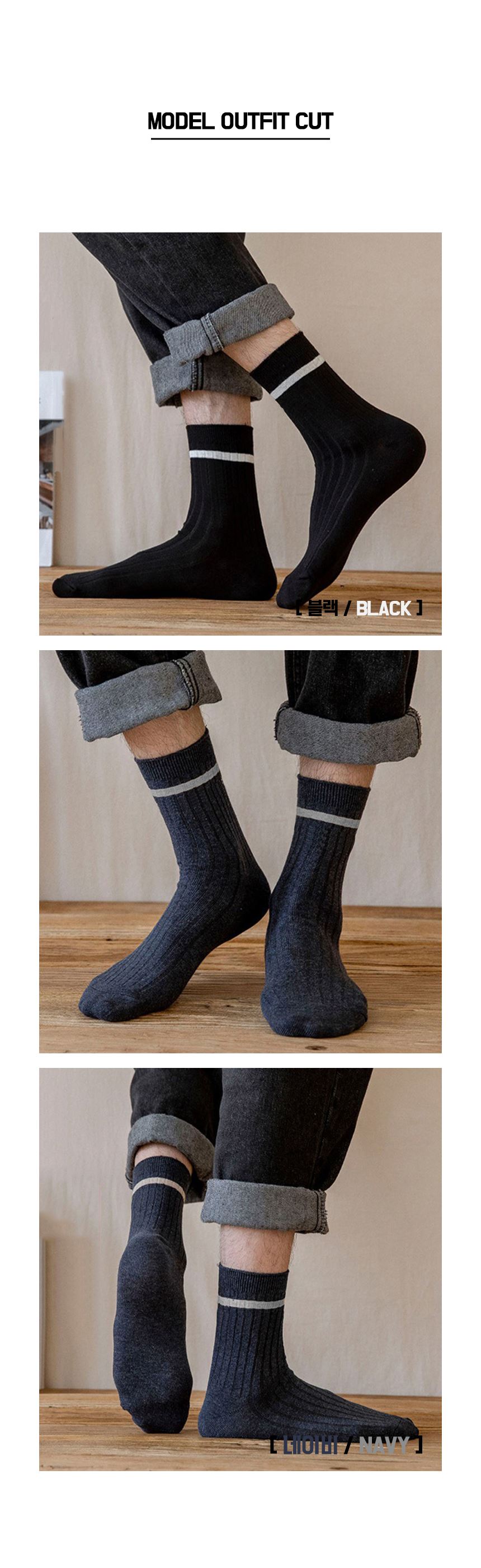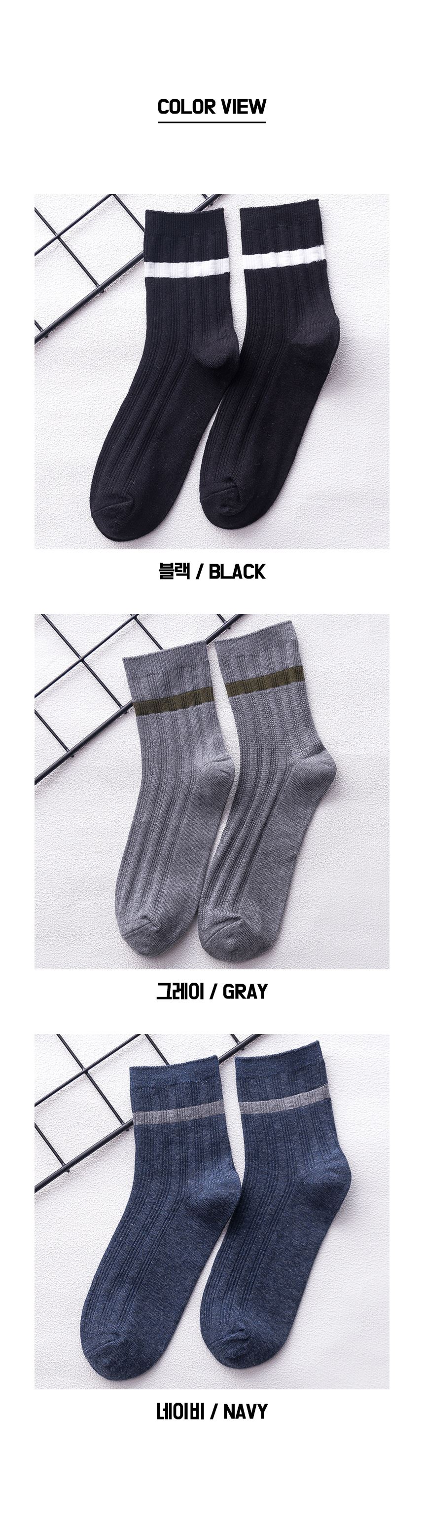 남성용 ML 네줄 골지 중목 양말