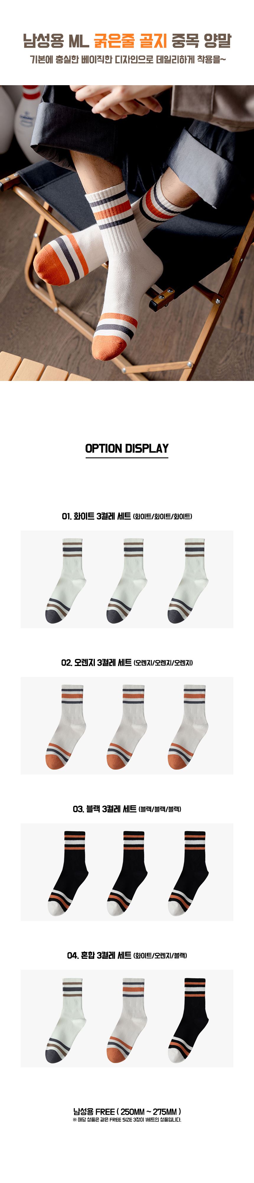 [SOC-014] 남성용 ML 굵은줄 골지 중목 양말 3켤레 세트