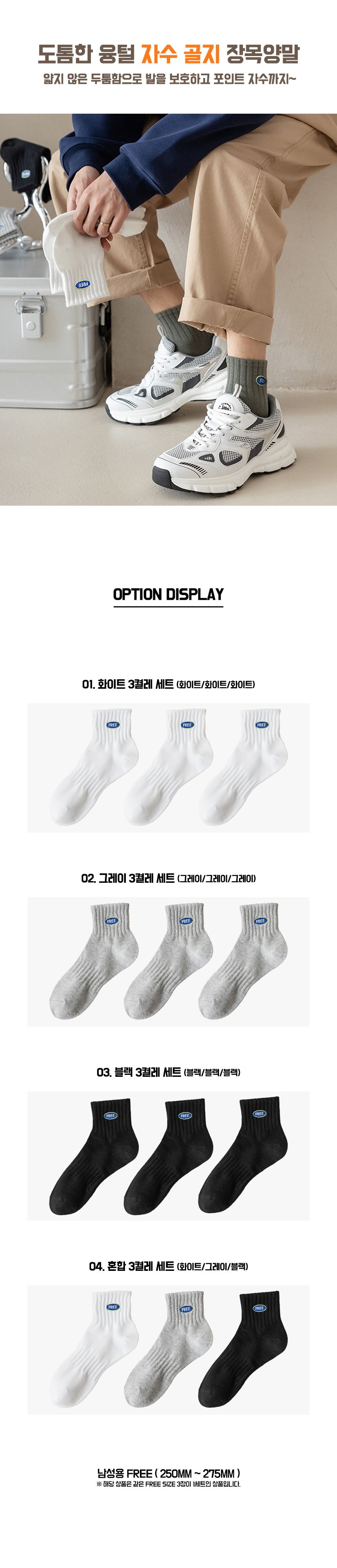 • 혼합 3켤레 세트 (화이트/그레이/블랙)